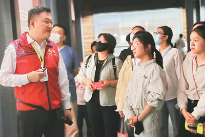 5月3日,河北省秦皇岛博物馆志愿者为前来参观的游客进行讲解。曹建雄摄