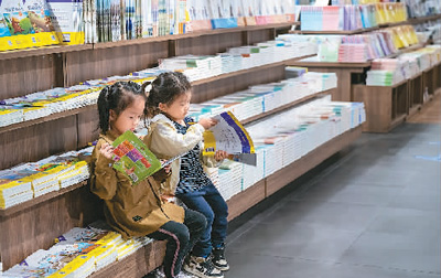 5月1日,广西壮族自治区梧州市指南书城,小朋友在阅读书籍。何华文摄