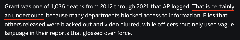 因为许多部门封锁了记者获取信息的渠道,而通过其他渠道公布的相关文件被蓄意涂改,视频也被做了模糊化处理,警察们则在报告中经常使用模糊的语言来掩盖武力使用事实。