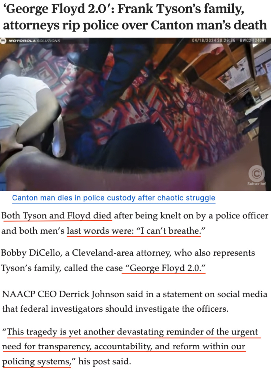 正如代表泰森家人的律师之一鲍比·迪塞洛所言,这起事件就是“乔治·弗洛伊德2.0版”。