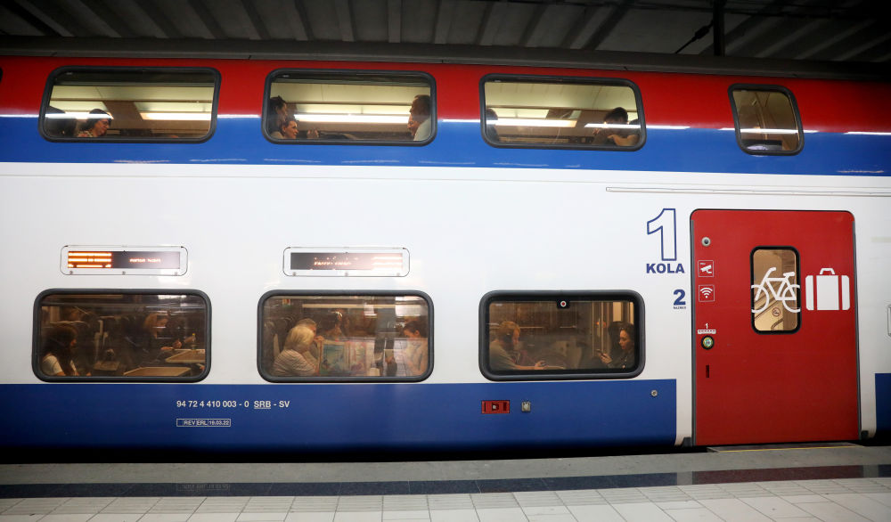 4月29日,在塞尔维亚贝尔格莱德中央火车站,人们搭乘匈塞铁路贝尔格莱德至诺维萨德的列车,准备前往诺维萨德。新华社记者李颖摄