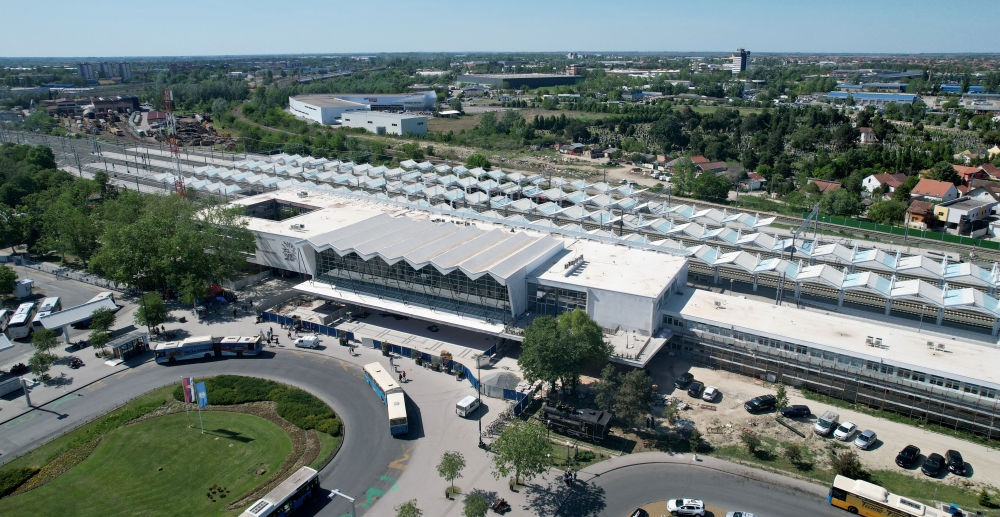 这是4月29日拍摄的塞尔维亚诺维萨德火车站(无人机照片)。新华社发,刘瑜欣摄