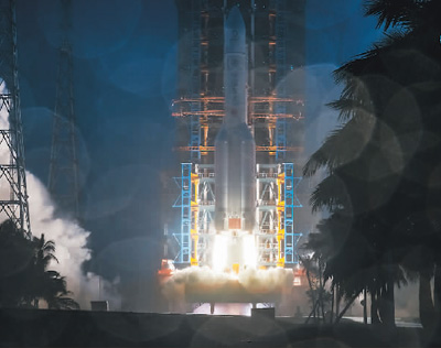 5月3日,嫦娥六号探测器由长征五号遥八运载火箭在中国文昌航天发射场发射,之后准确进入地月转移轨道,发射任务取得圆满成功。国家航天局供图(新华社发)
