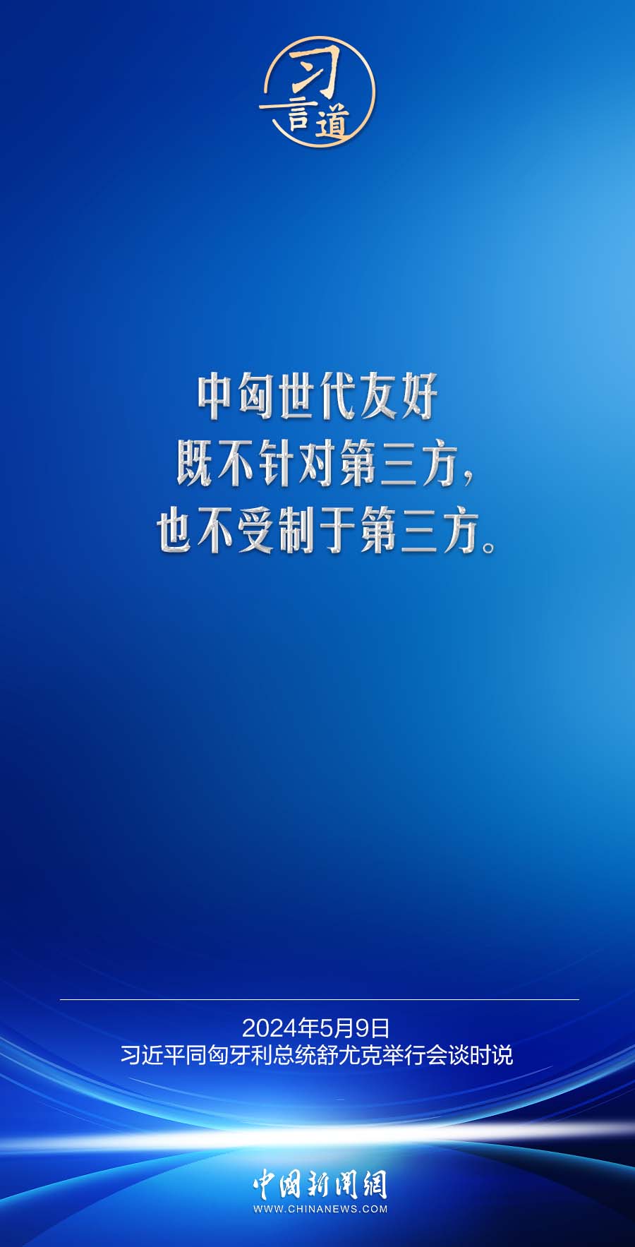 当地时间5月9日上午,国家主席习近平在布达佩斯总统府同匈牙利总统舒尤克举行会谈。习近平指出——