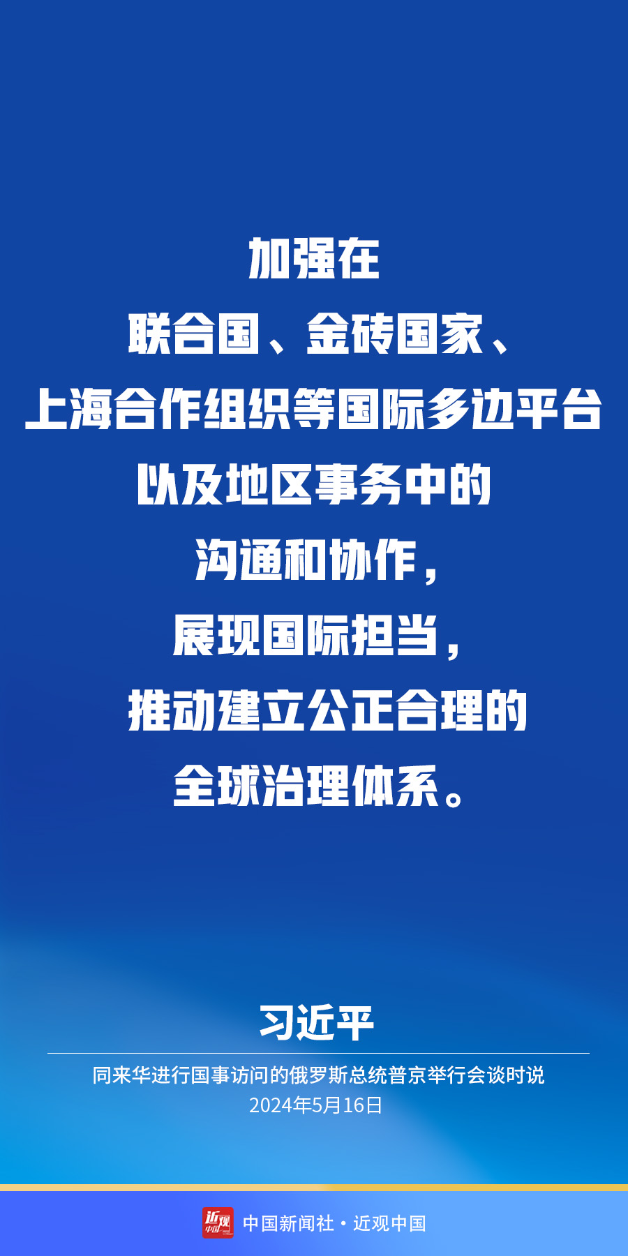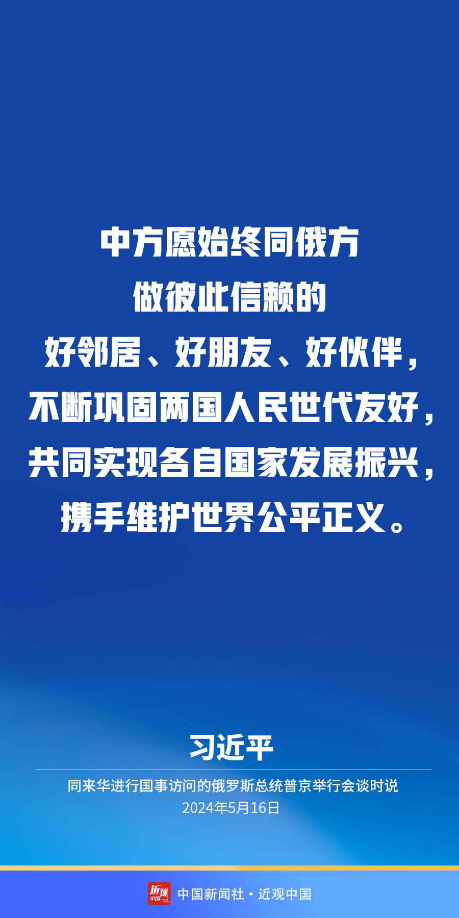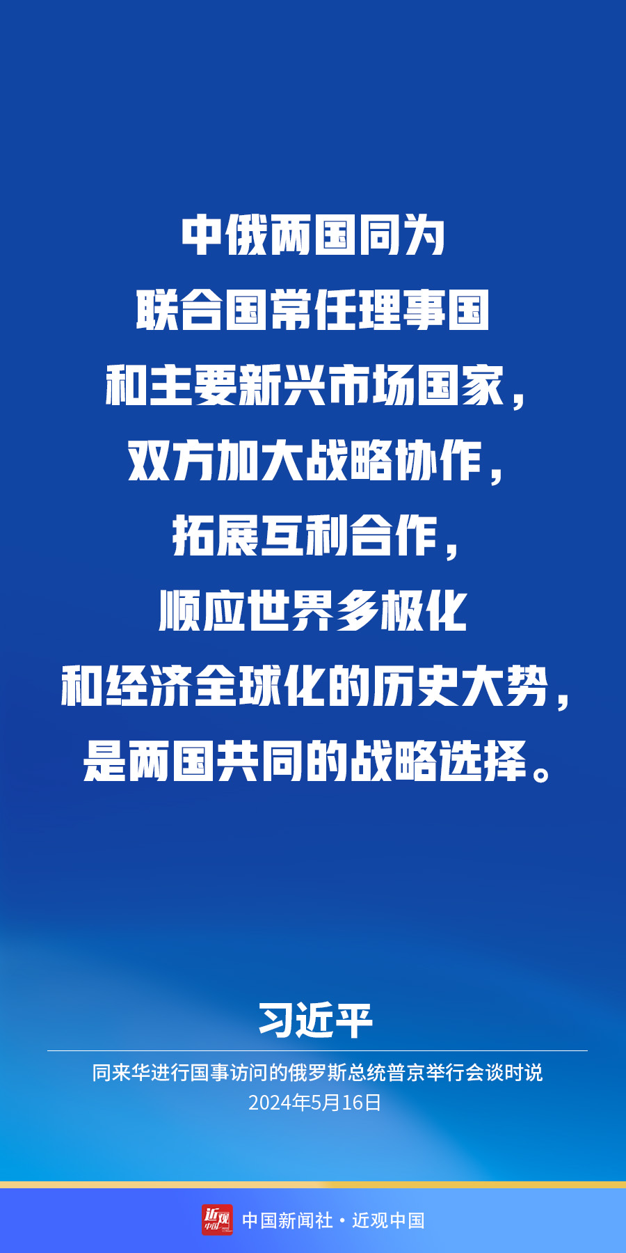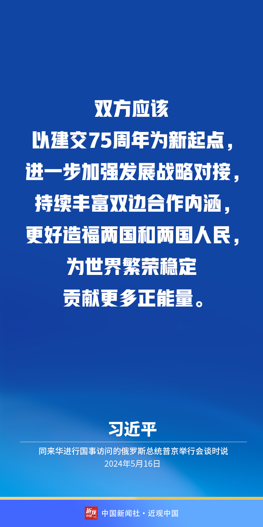 5月16日上午,国家主席习近平在北京人民大会堂同来华进行国事访问的俄罗斯总统普京举行会谈。习近平指出——