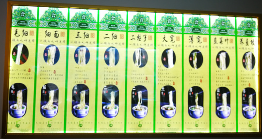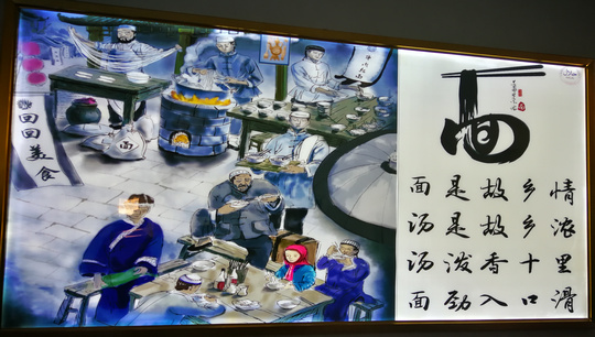 如今,随意走进一家拉面店,你可以看到头戴白帽、身穿白净工作服的拉面师围着一张面案,一截近20公分长5公分粗的面剂,从案板上提起,立刻就变成一副“弹簧拉力器”,来回伸缩两下,又立马换成立体的“五线音谱”……经过短短十几秒时间,六七十米长的拉面银丝就制作完成了。