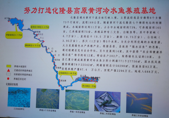 “一人富,富一家;全村富,富一片。”化隆县以“农民增收、农业增效”为工作目标,充分利用水域资源优势,通过项目带动、政策扶持和兴办水产养殖合作组织,大力发展水产养殖业。目前,依托项目建设,先后建成了甘都镇水车村,群科镇向东村、团结一村,德恒隆乡哇加滩村、牙什尕镇牙什尕村等标准化健康养殖示范场。继“拉面经济”之后,河湟两岸的百姓依靠冷水鱼养殖奔向了小康生活,冷水鱼养殖成为农民致富的“潜力股”。