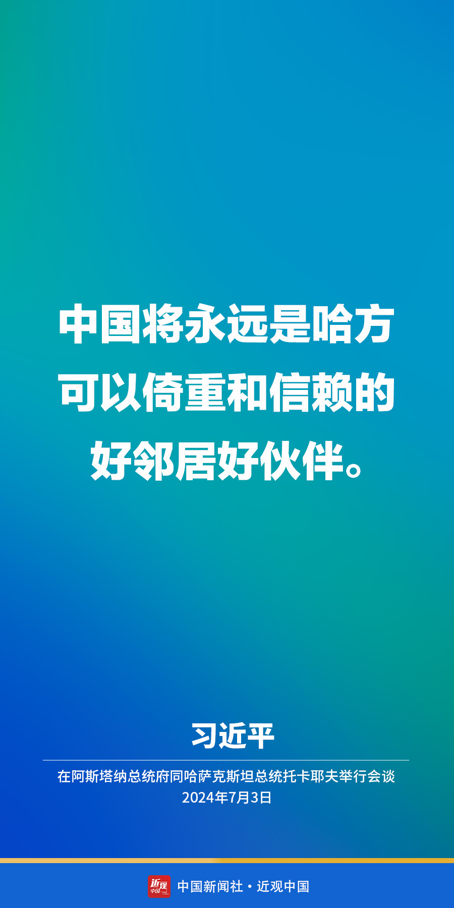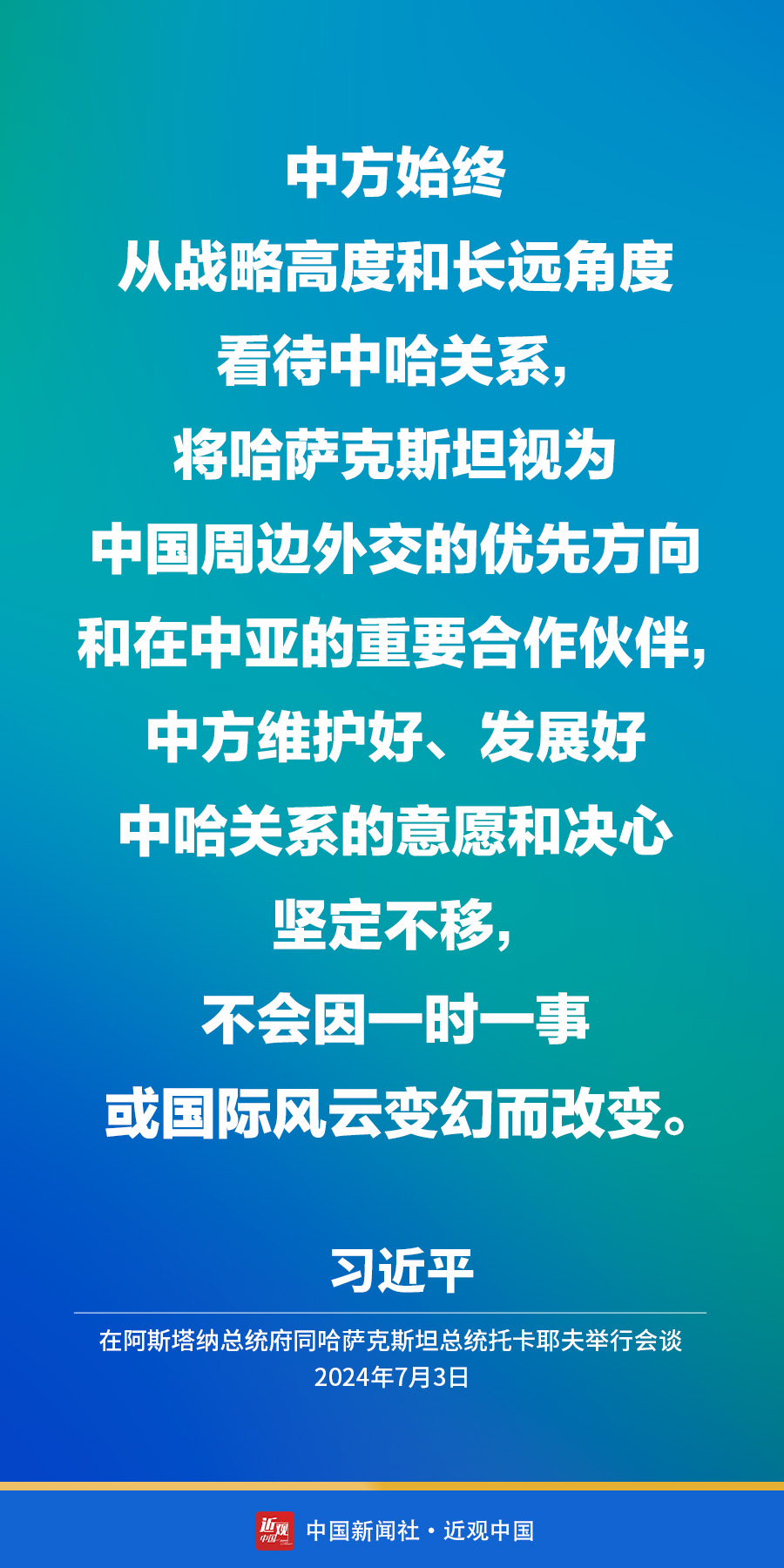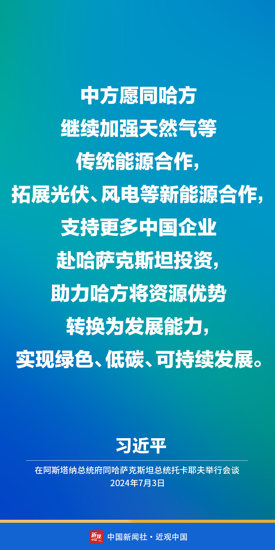 当地时间7月3日上午,国家主席习近平在阿斯塔纳总统府同哈萨克斯坦总统托卡耶夫举行会谈。他指出——