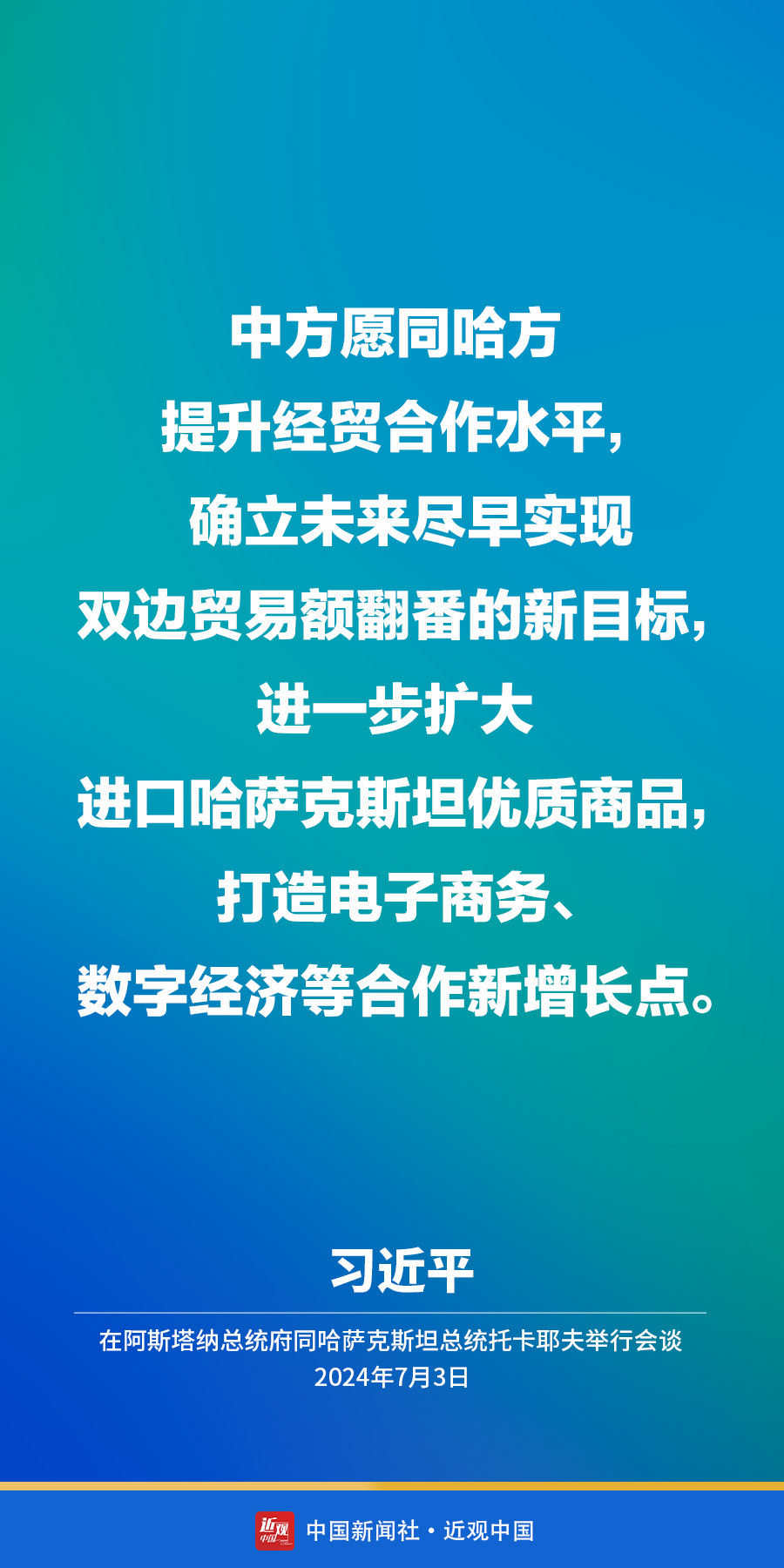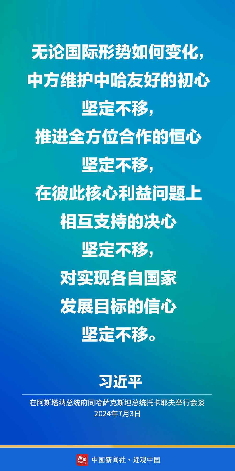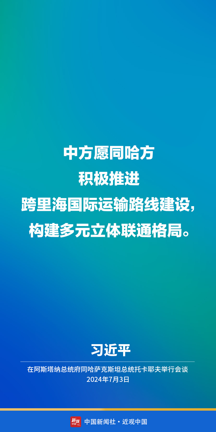 当地时间7月3日上午,国家主席习近平在阿斯塔纳总统府同哈萨克斯坦总统托卡耶夫举行会谈。他指出——