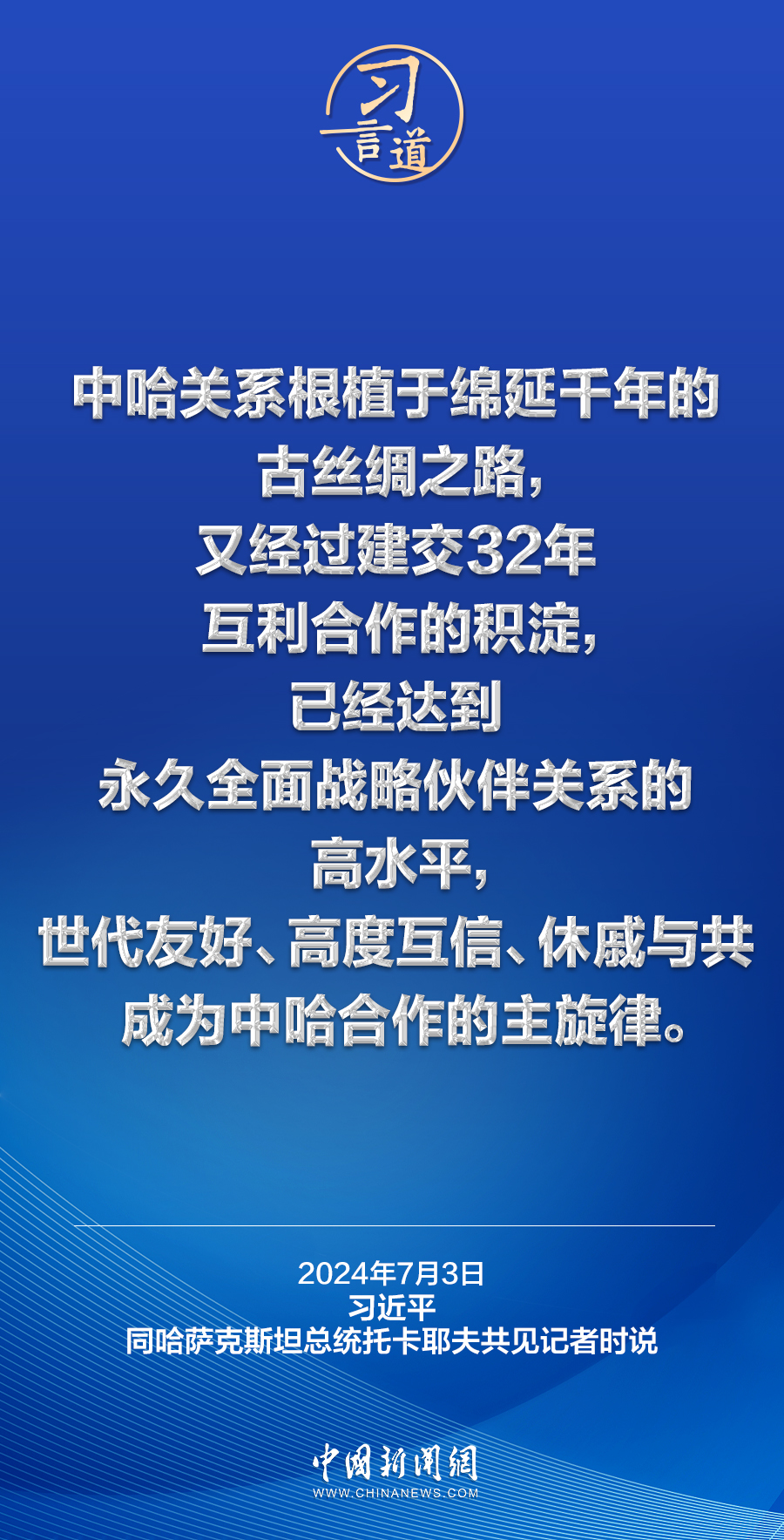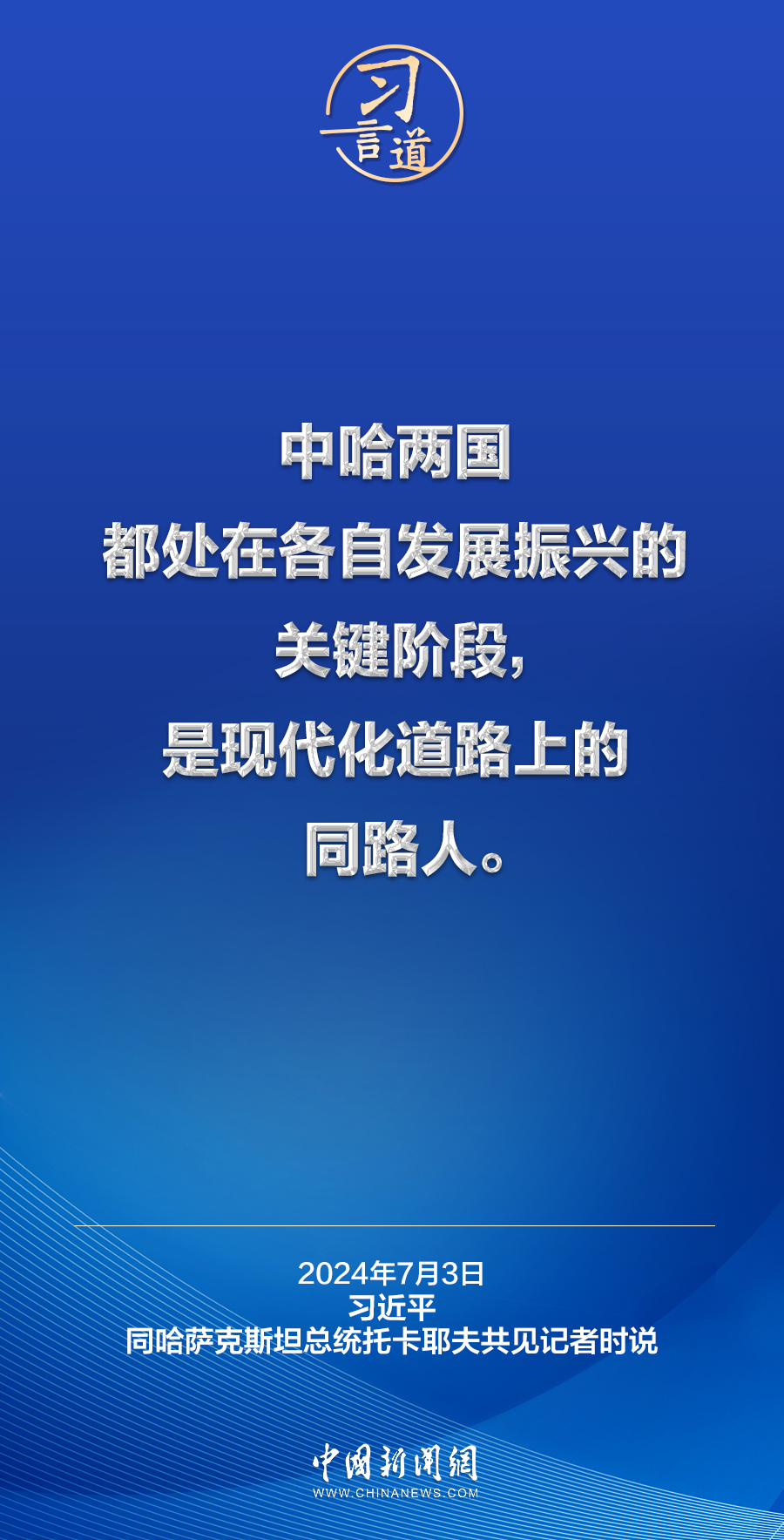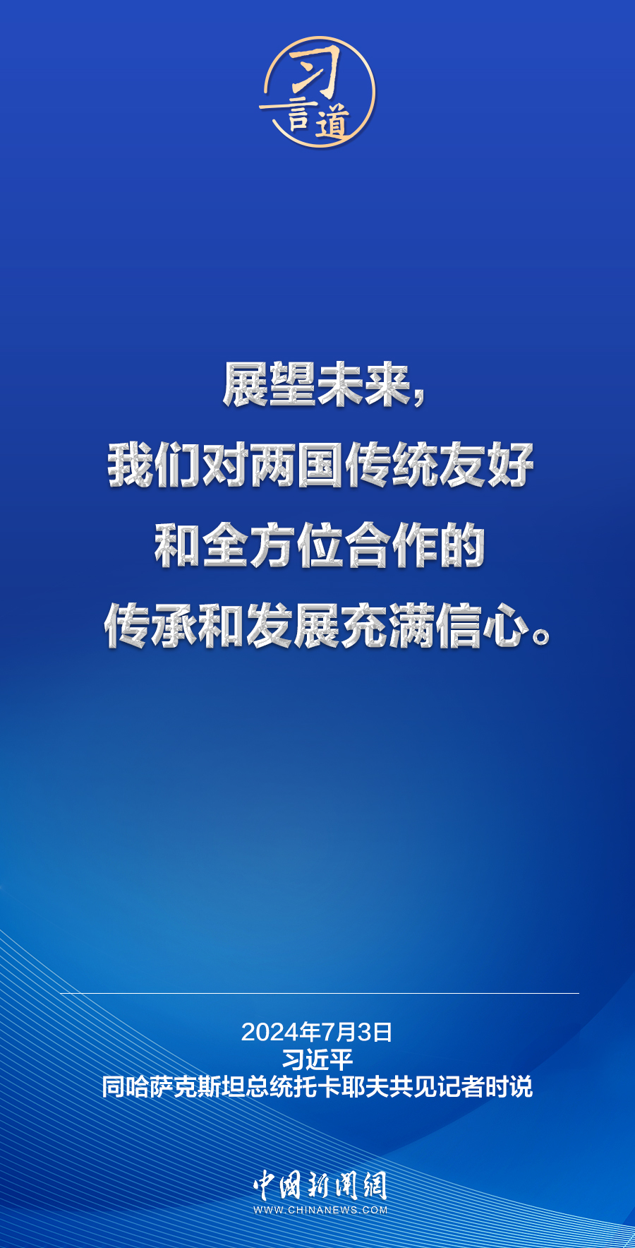 当地时间7月3日,国家主席习近平在阿斯塔纳总统府同哈萨克斯坦总统托卡耶夫会谈后共同会见记者。习近平指出——