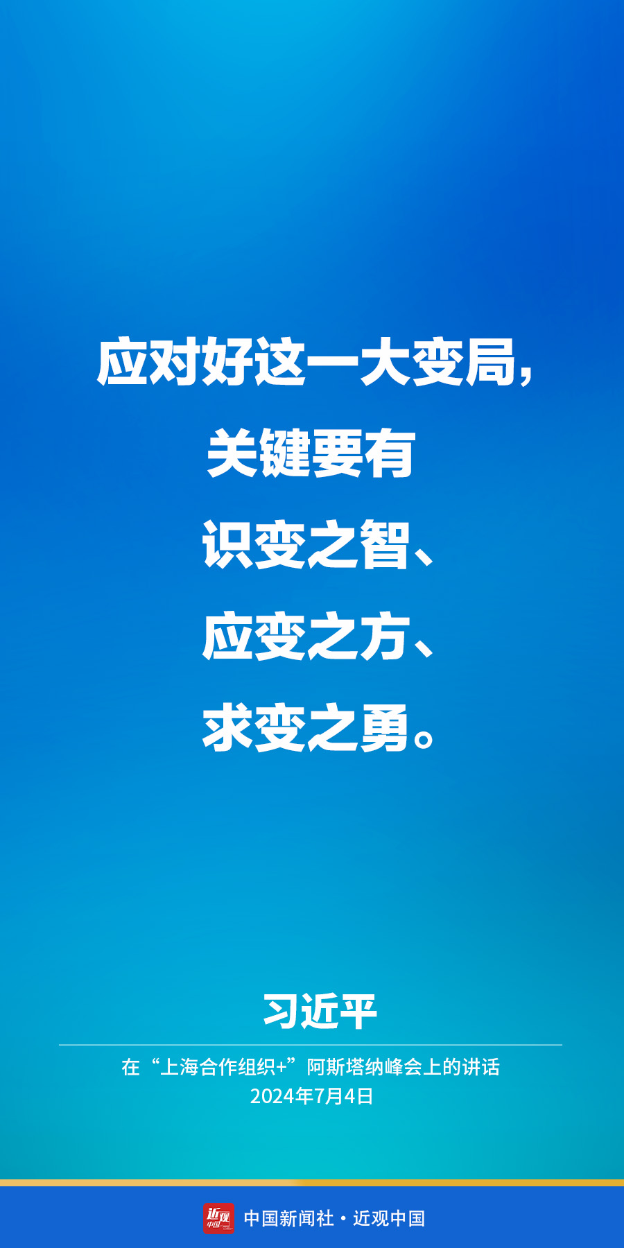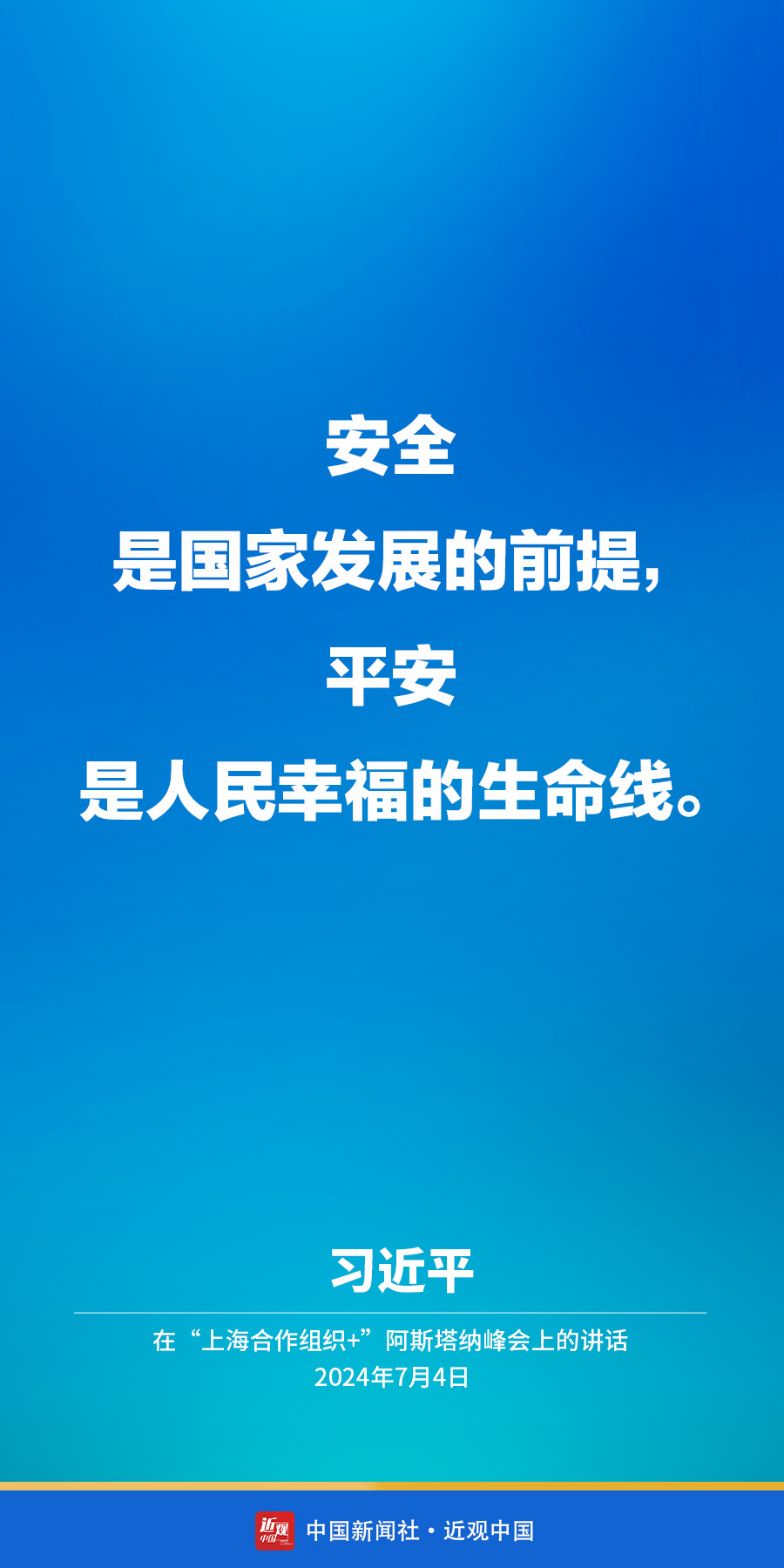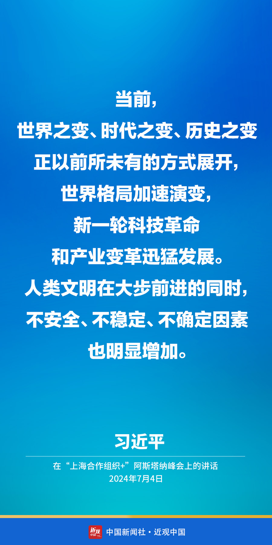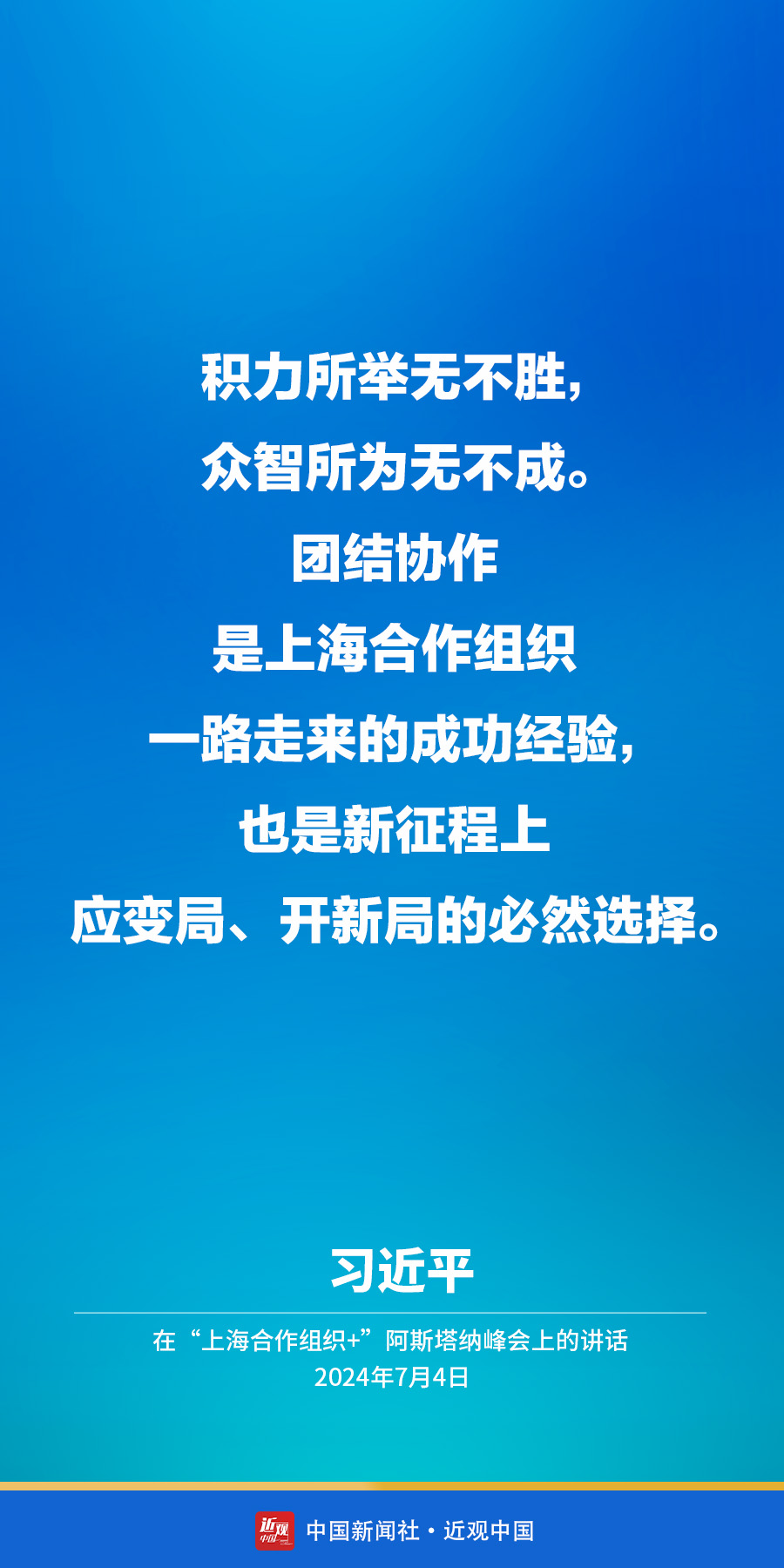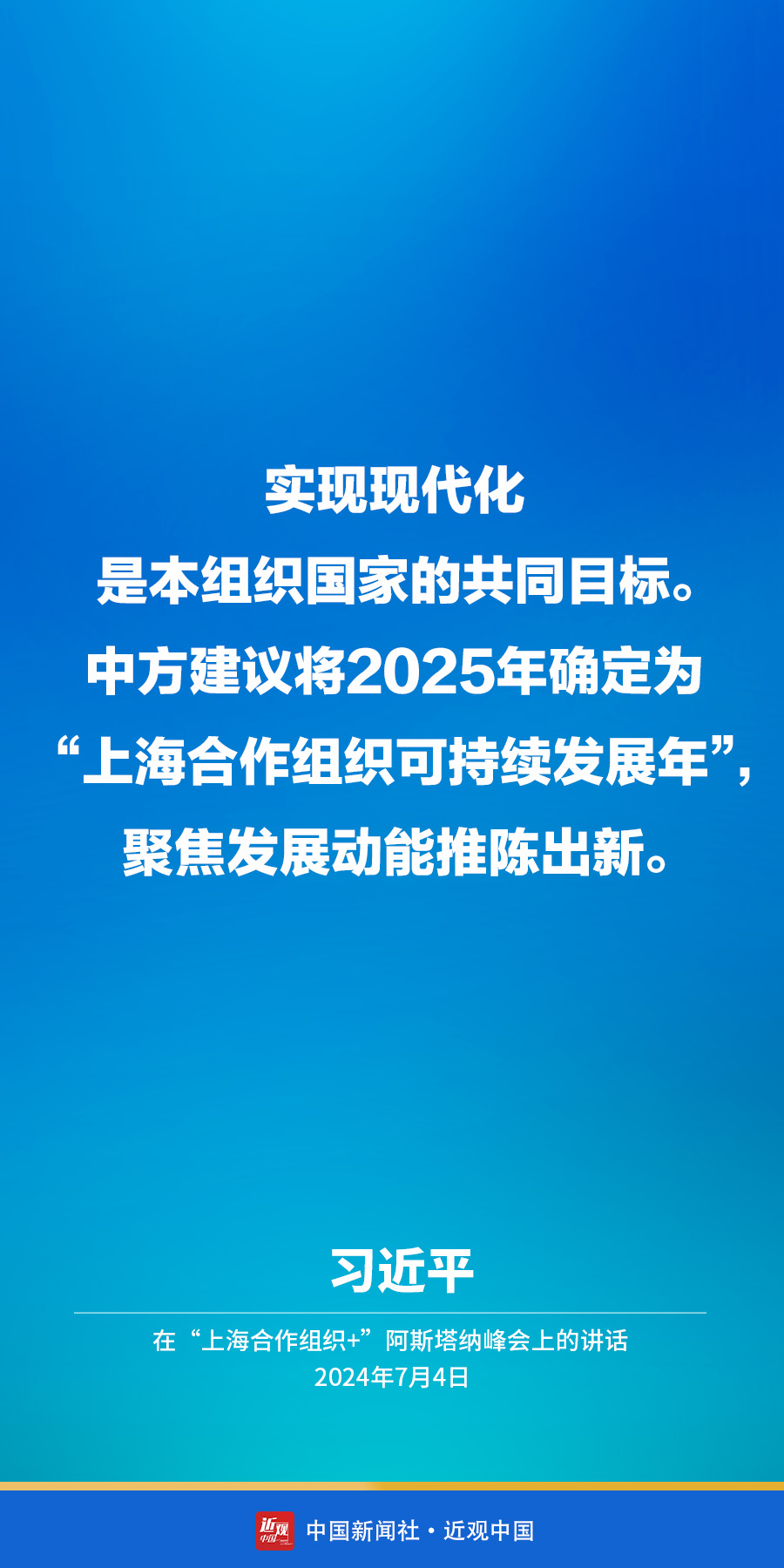 当地时间7月4日下午,国家主席习近平在阿斯塔纳出席“上海合作组织+”阿斯塔纳峰会并发表题为《携手构建更加美好的上海合作组织家园》的重要讲话。他在讲话中指出——