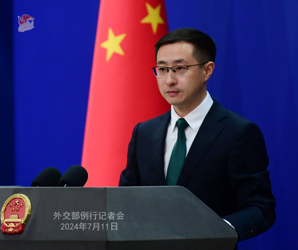中新网北京7月11日电 (记者 郭超凯 黄钰钦)中国外交部发言人林剑11日主持例行记者会。