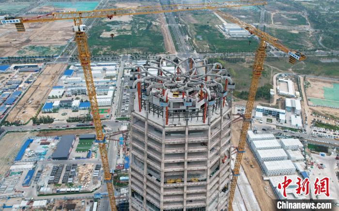 2024年6月20日,航拍雄安地标性建筑中国中化大厦,目前已呈现出层层簇拥、拔节生长的体态。 中新社记者 韩冰 摄