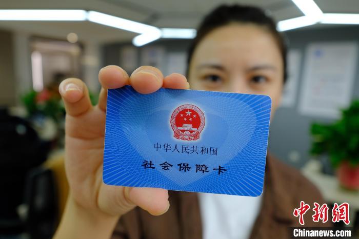 2021年4月26日,江苏省南京市,一位市民展示社会保障卡。 中新社记者 泱波 摄