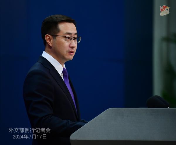 中新网北京7月17日电 (记者 张蔚然 黄钰钦)中国外交部发言人林剑7月17日主持例行记者会。