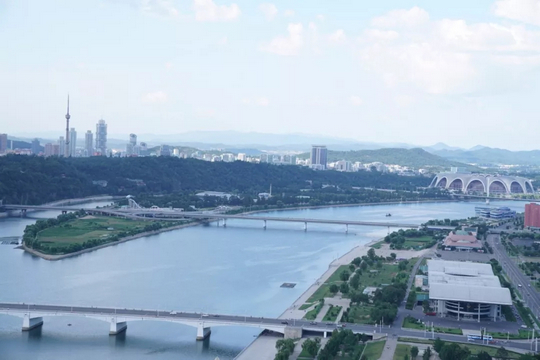 进入平壤,映入眼帘的是一座宛如童话般的城市:蓝天、白云,街道整洁干净,绿树成荫,少有汽车的喧闹和人群拥挤的嘈杂;造型各异、新颖别致的公共文化设施和商业大楼随处可见;五颜六色的住宅楼群鳞次栉比,沿着市区最繁华的大街向外延伸;巨幅的领袖画像和振奋昂扬的标语牌矗立在街道最吸眼球的地段;蜿蜒清澈、波光粼粼的朝鲜母亲河大同江穿过平壤全城,似玉带般把平壤装点得分外妖娆。