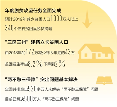 日前召开的全国扶贫开发工作会议传来喜讯:2019年年度脱贫攻坚任务全面完成,预计全年减少贫困人口1000万人以上,340个左右贫困县脱贫摘帽。再经过2020年这一年的努力,中华民族千百年来的绝对贫困问题将得到历史性解决。