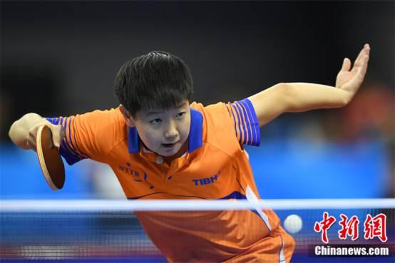 2017年,孙颖莎参加第十三届全运会乒乓球女子团体预赛。中新社记者 武俊杰 摄