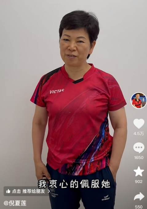 倪夏莲则在社媒上更新了短视频,全程笑着祝贺孙颖莎战胜自己,“我真的是翻越不了她这座山”。最后,她祝福孙颖莎能打出好成绩,虽然前进的道路上会有阻碍,但“争取实现梦想”。