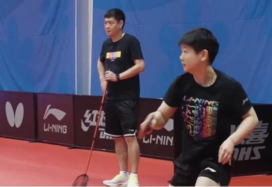 邱贻可陪孙颖莎训练。图源:界外编辑部视频