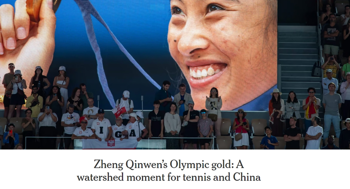 文章写道,在现场,为观看奥运会而来到巴黎的中国人和居住在这里的华人,都为这场胜利做好了准备,随处可见高举的五星红旗。中国球迷尽其所能,让郑钦文感觉就像在祖国比赛一样。文章还援引了塞尔维亚名将德约科维奇决赛前对郑钦文的评价:“她是这项运动中最耀眼的明星之一。”