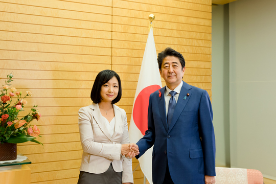 安倍和鳳凰衛視駐東京首席記者李淼