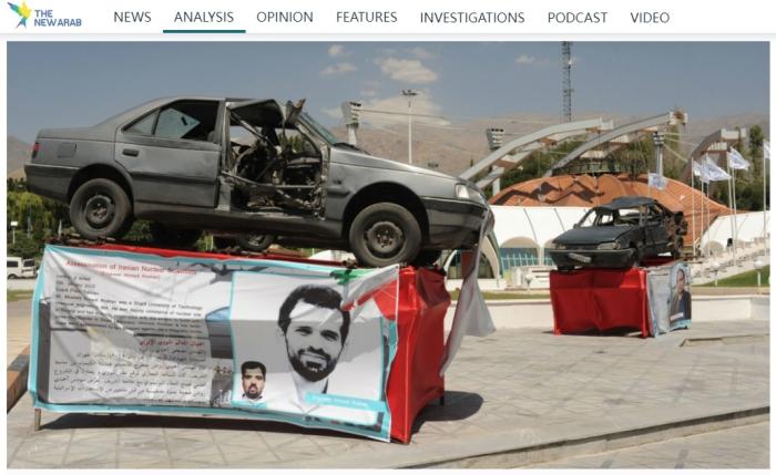 伊朗展示多位遇刺核科学家的座驾残骸。图/英《新阿拉伯报》网站截图