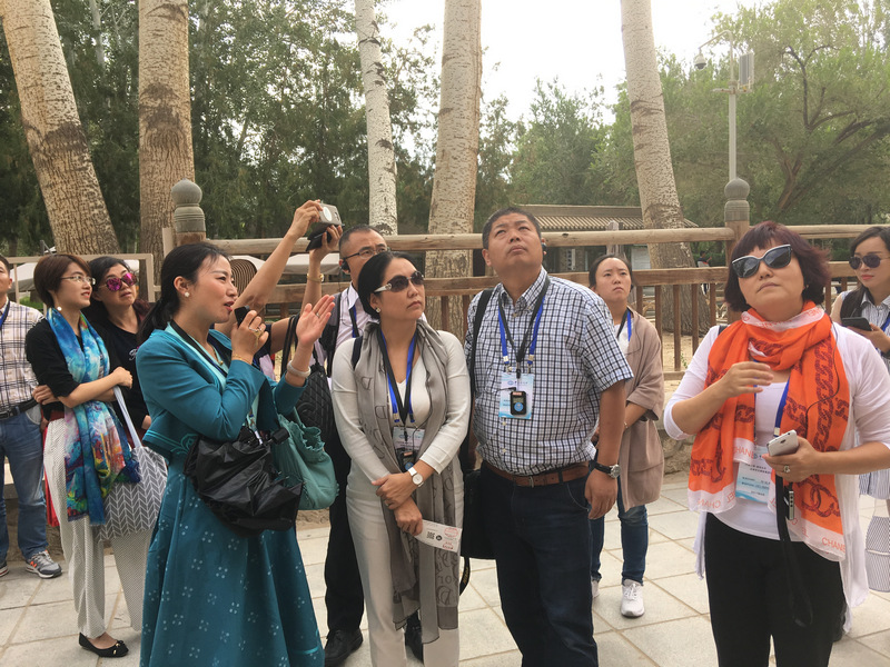 昨天,9月4日,中国新闻社甘肃分社殷春永社长及其社里朋友们、敦煌市相关部门领导与我们所参访景点或地区的朋友们密切配合,与世界华文媒体代表们一起在敦煌石窟文化陈列中心以及鸣沙山月牙泉集体采风,充分领略千年敦煌历史文化风采以及无限美好风光: