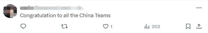 在社交媒体上,大量网友为中国运动员们的表现而赞叹,并表示祝贺。