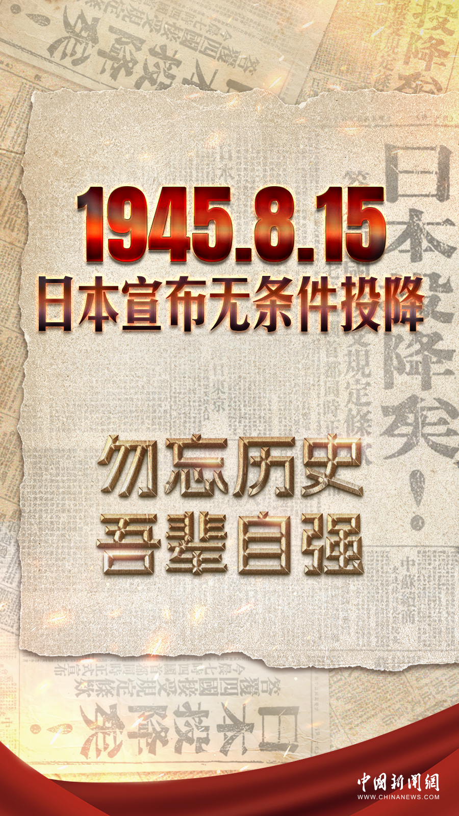 1945年8月15日,日本宣布无条件投降,79载春秋更替,战争的硝烟虽已远去,但和平的警钟仍需长鸣。这一天,我们永远铭记!致敬先辈不屈的抗争,勿忘历史,吾辈自强!