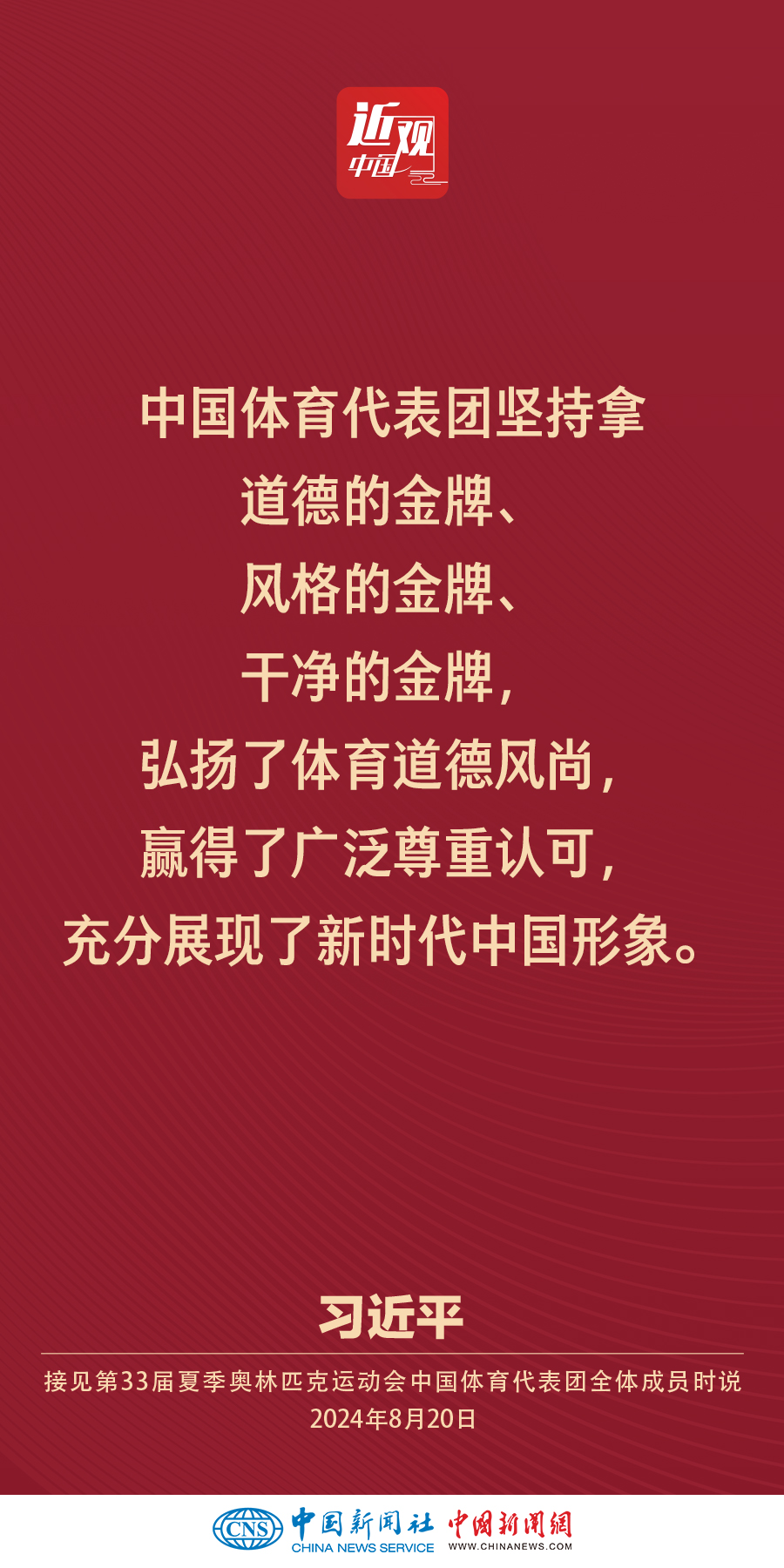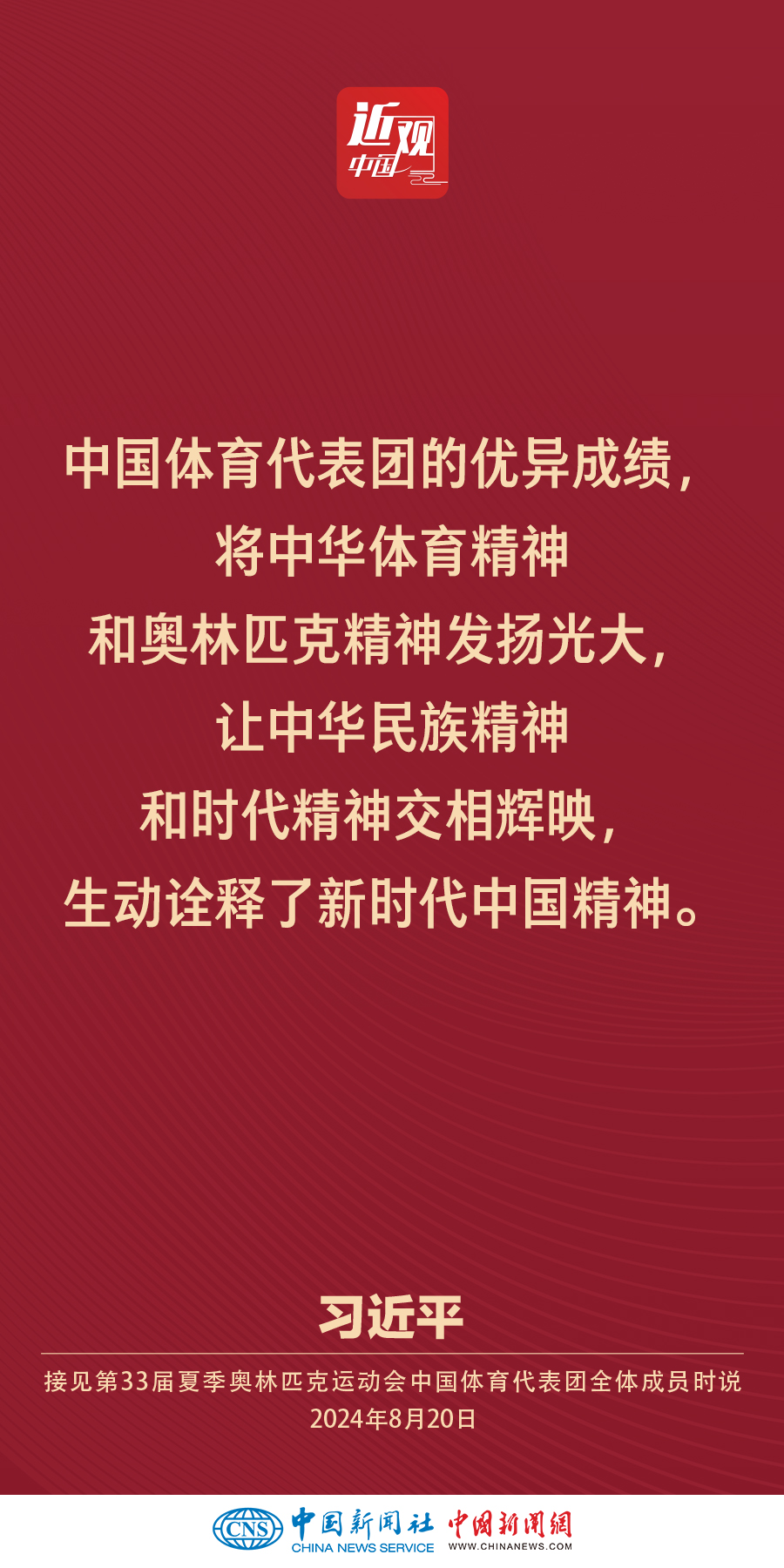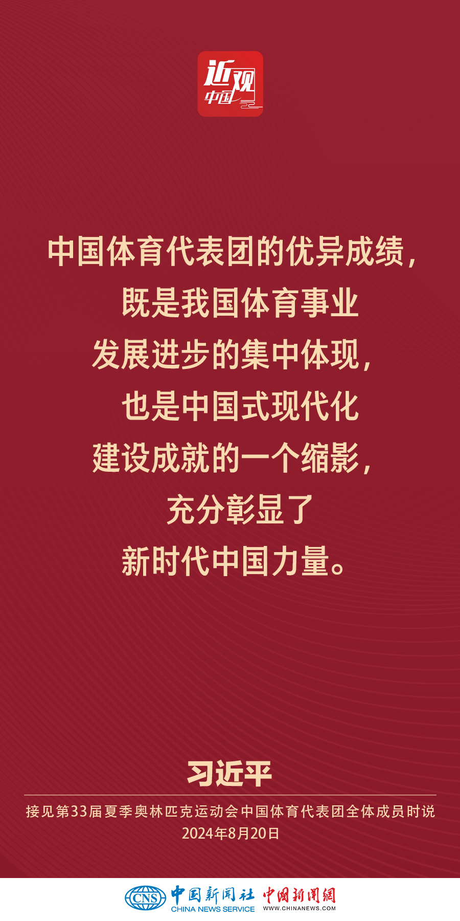 中共中央总书记、国家主席、中央军委主席习近平20日下午在人民大会堂接见第33届夏季奥林匹克运动会中国体育代表团全体成员。他强调——