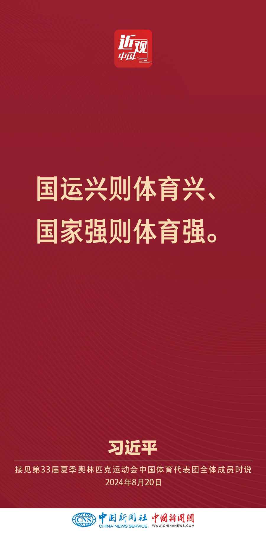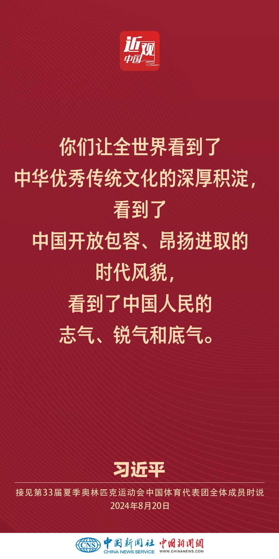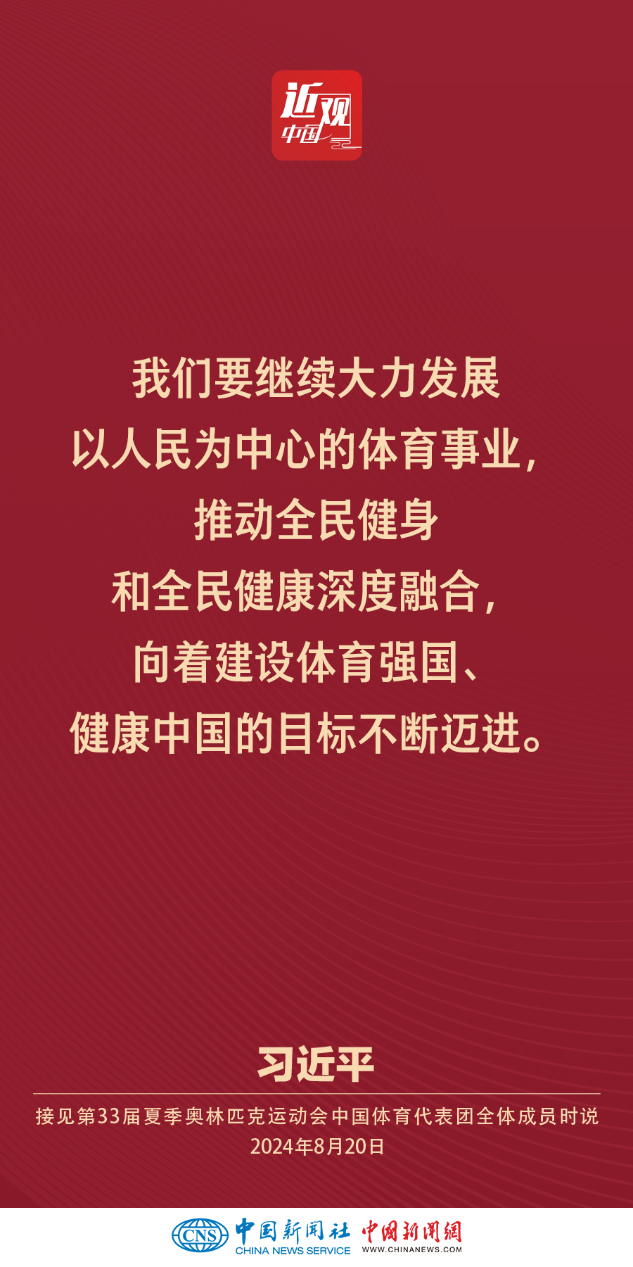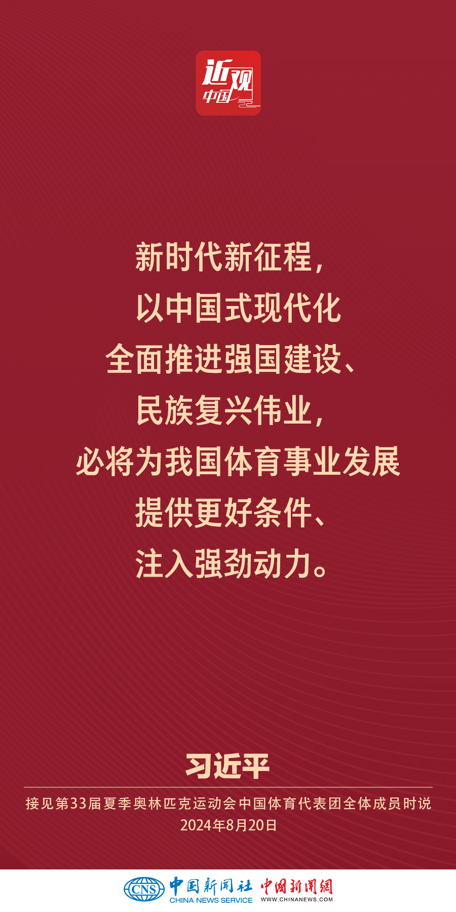 中共中央总书记、国家主席、中央军委主席习近平20日下午在人民大会堂接见第33届夏季奥林匹克运动会中国体育代表团全体成员。他强调——