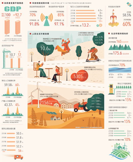 GDP比2010年翻一番、现行标准下农村贫困人口全部脱贫、五年新增就业大于5000万人……顺序展开的时间轴上,这些今年要达成的目标,进度喜人。冲锋号已经吹响,全面小康在望。本版推出特别策划,聚焦“十三五”规划主要指标完成情况,分享奋斗者实干拼搏的荣光。