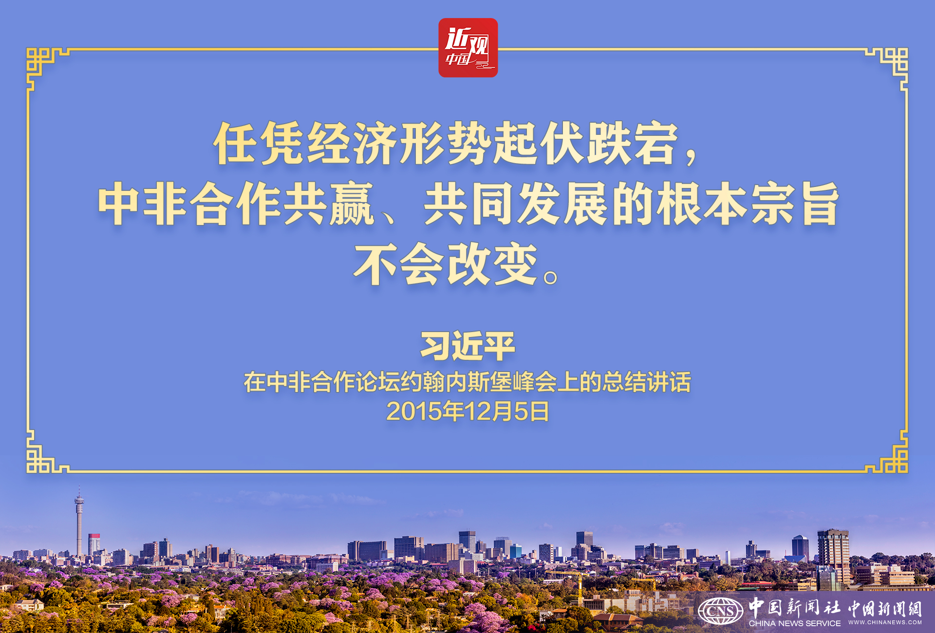 2015年12月5日,中非合作论坛约翰内斯堡峰会全体会举行,国家主席习近平和南非总统祖马共同主持。习近平指出,任凭国际格局调整演变,中非平等互信、相互支持的兄弟情谊不会改变。任凭经济形势起伏跌宕,中非合作共赢、共同发展的根本宗旨不会改变。任凭时代社会发展变迁,中非相互理解、共同进步的协作精神不会改变。任凭出现各种威胁挑战,中非风雨同舟、患难与共的坚定意志不会改变。