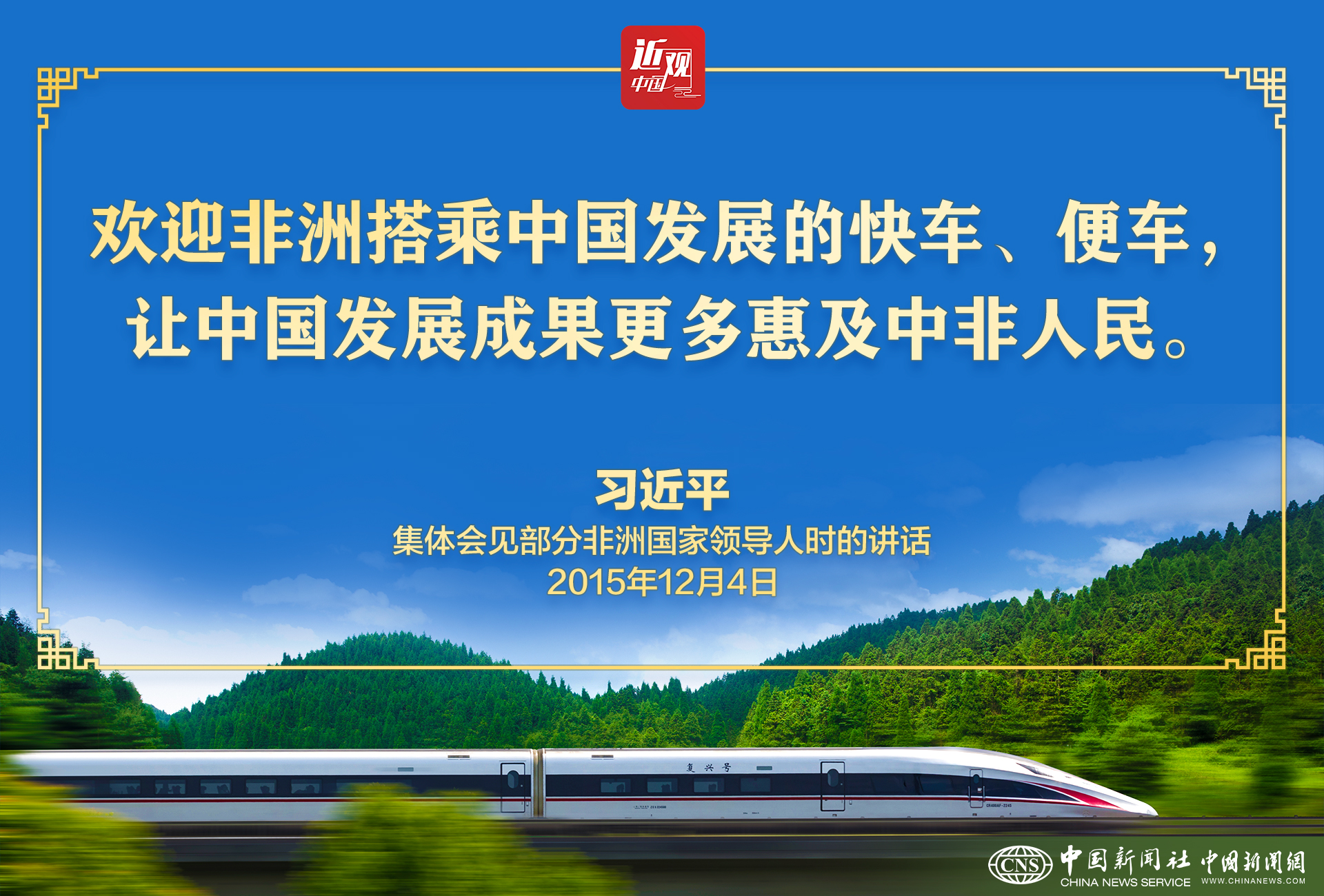 2015年12月4日,国家主席习近平在约翰内斯堡集体会见13位非洲国家领导人。与会领导人高度评价中非关系发展取得的成果,祝愿中非合作论坛峰会成功,就中非关系和双边关系交流看法,为中非合作发展建言献策。习近平强调,中国将继续为非洲发展作出新的更大贡献,欢迎非洲搭乘中国发展的快车、便车,让中国发展成果更多惠及中非人民。