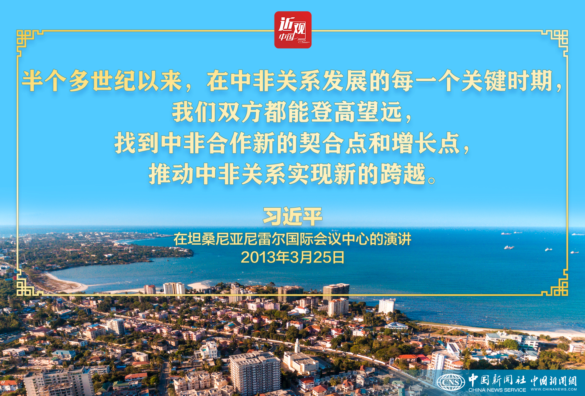 2013年3月25日,正在坦桑尼亚进行国事访问的国家主席习近平在坦桑尼亚尼雷尔国际会议中心发表题为《永远做可靠朋友和真诚伙伴》的重要演讲,总结中非友好关系发展历史经验,全面阐述新时期中非共谋和平、同促发展的政策主张。习近平指出,半个多世纪以来,在中非关系发展的每一个关键时期,我们双方都能登高望远,找到中非合作新的契合点和增长点,推动中非关系实现新的跨越。这种逢山开路、遇水架桥的开拓精神,是我们不断提高中非合作水平的重要法宝。