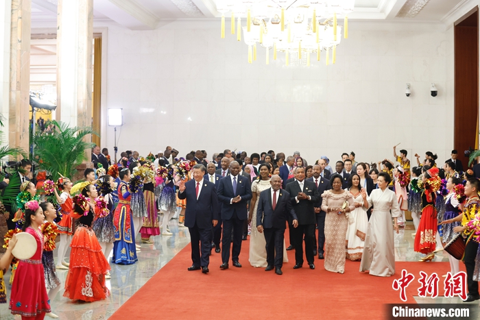 9月4日晚,中国国家主席习近平和夫人彭丽媛在人民大会堂举行宴会,欢迎来华出席中非合作论坛北京峰会的国际贵宾。中新社记者 韩海丹 摄