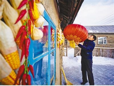 赵民兴在给村里的客栈挂灯笼。 刘心杨 摄