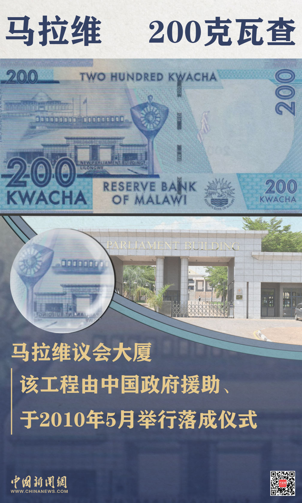 2007年,马拉维与中国正式建交。由中国援建的马拉维议会大厦是中马建交五项重大工程之一。建筑面积达2.6万平方米的议会大厦,仅用短短15个月便拔地而起,展示了令世界惊叹的“中国速度”。