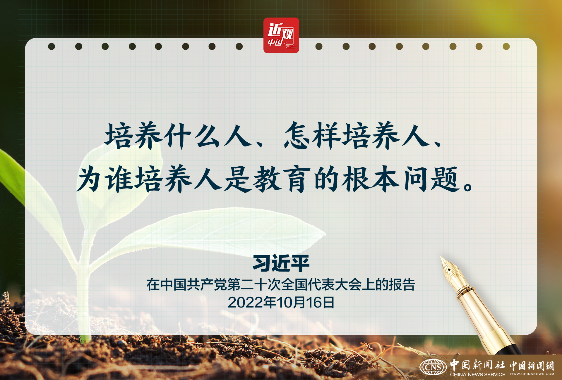 2022年10月16日,中共中央总书记习近平在中国共产党第二十次全国代表大会上作报告。习近平表示,教育是国之大计、党之大计。培养什么人、怎样培养人、为谁培养人是教育的根本问题。育人的根本在于立德。全面贯彻党的教育方针,落实立德树人根本任务,培养德智体美劳全面发展的社会主义建设者和接班人。