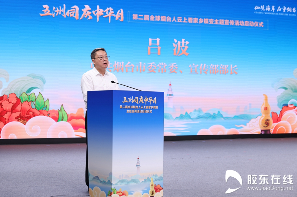烟台融媒9月13日讯(记者 王向荣 摄影 李刚)9月13日,“五洲同庆中华月——第二届全球烟台人云上看家乡蝶变”主题宣传活动在烟台启动。烟台市委常委、宣传部部长吕波出席活动并致辞。