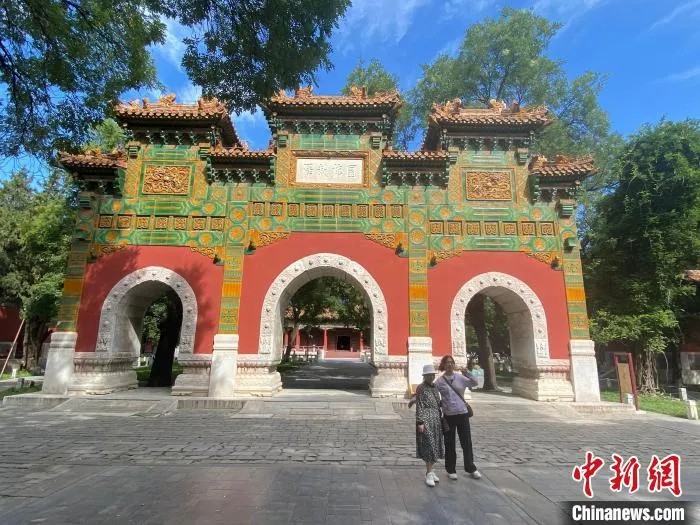 北京国子监内的琉璃牌坊是中国唯一一座专门为教育而设立的牌坊。中新社记者 陈杭 摄