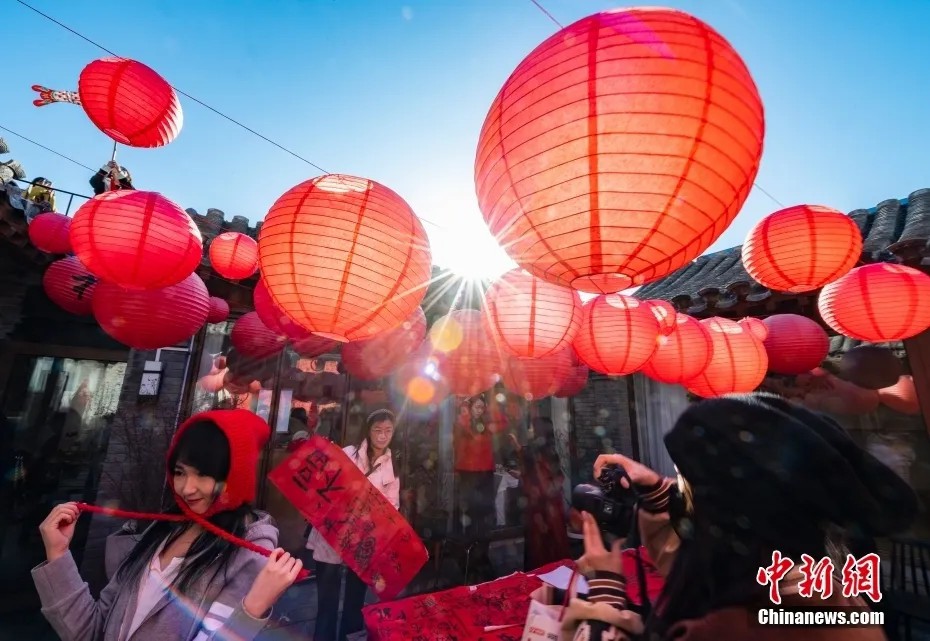 北京一家“藏在”四合院里的小咖啡店挂起红灯笼,营造出浓厚的中国传统新年氛围,吸引市民前往“打卡”。中新社记者 侯宇 摄
