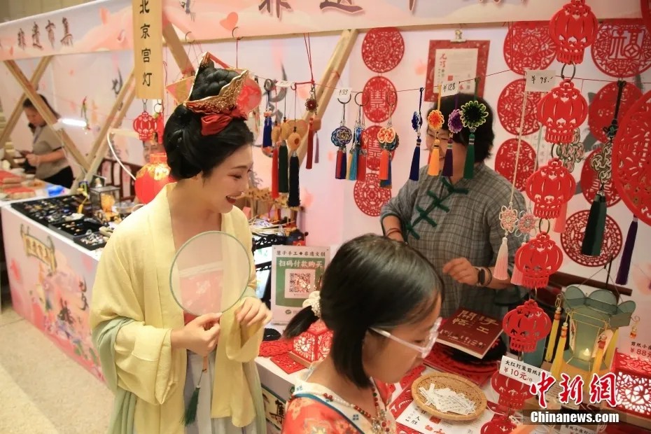 图为身着汉服的游客游览非遗市集。中新社记者 王紫儒 摄