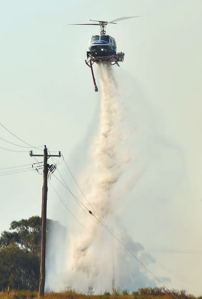 在新南威尔士州,一架直升机洒水灭火。 新华社发