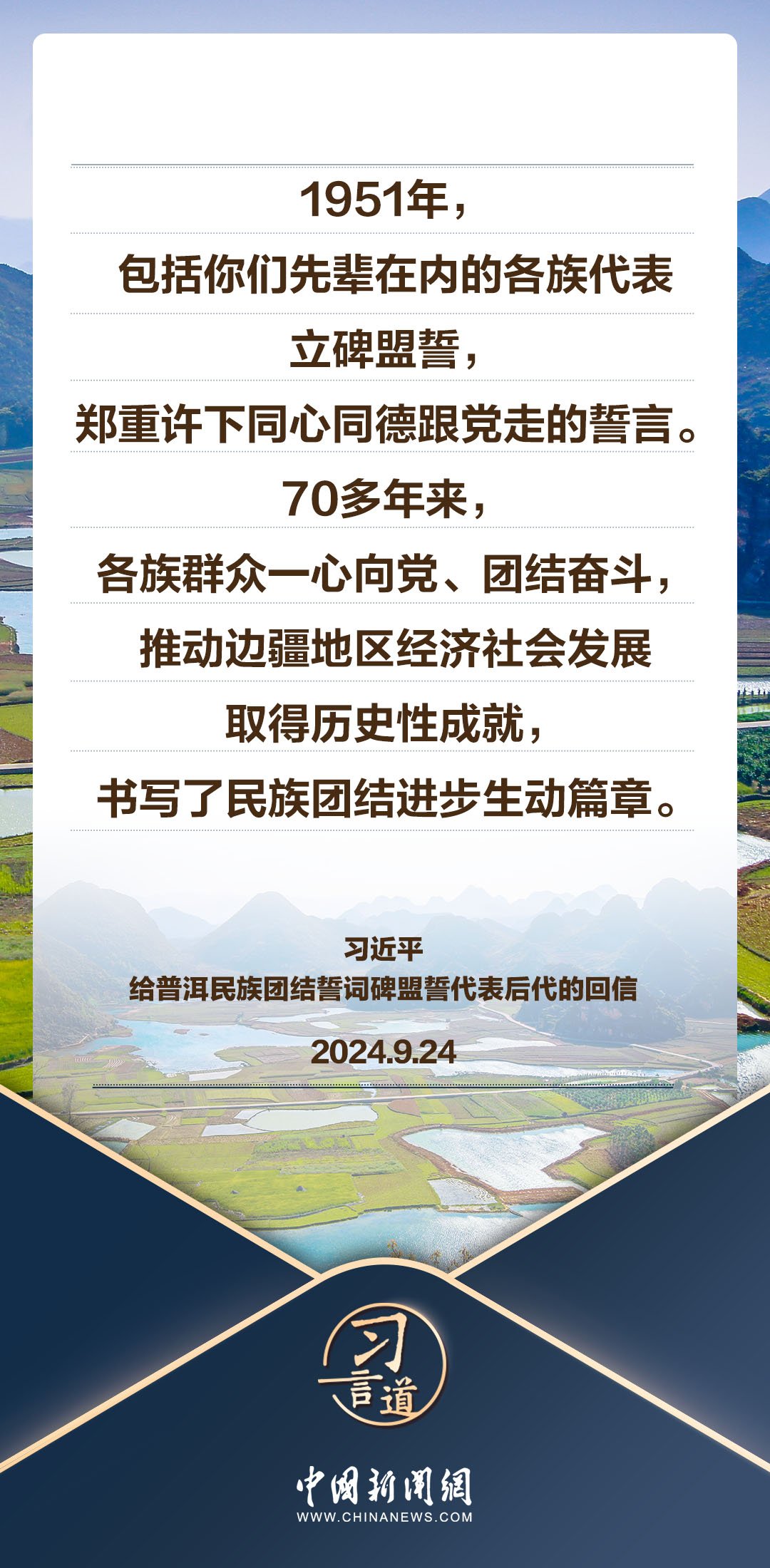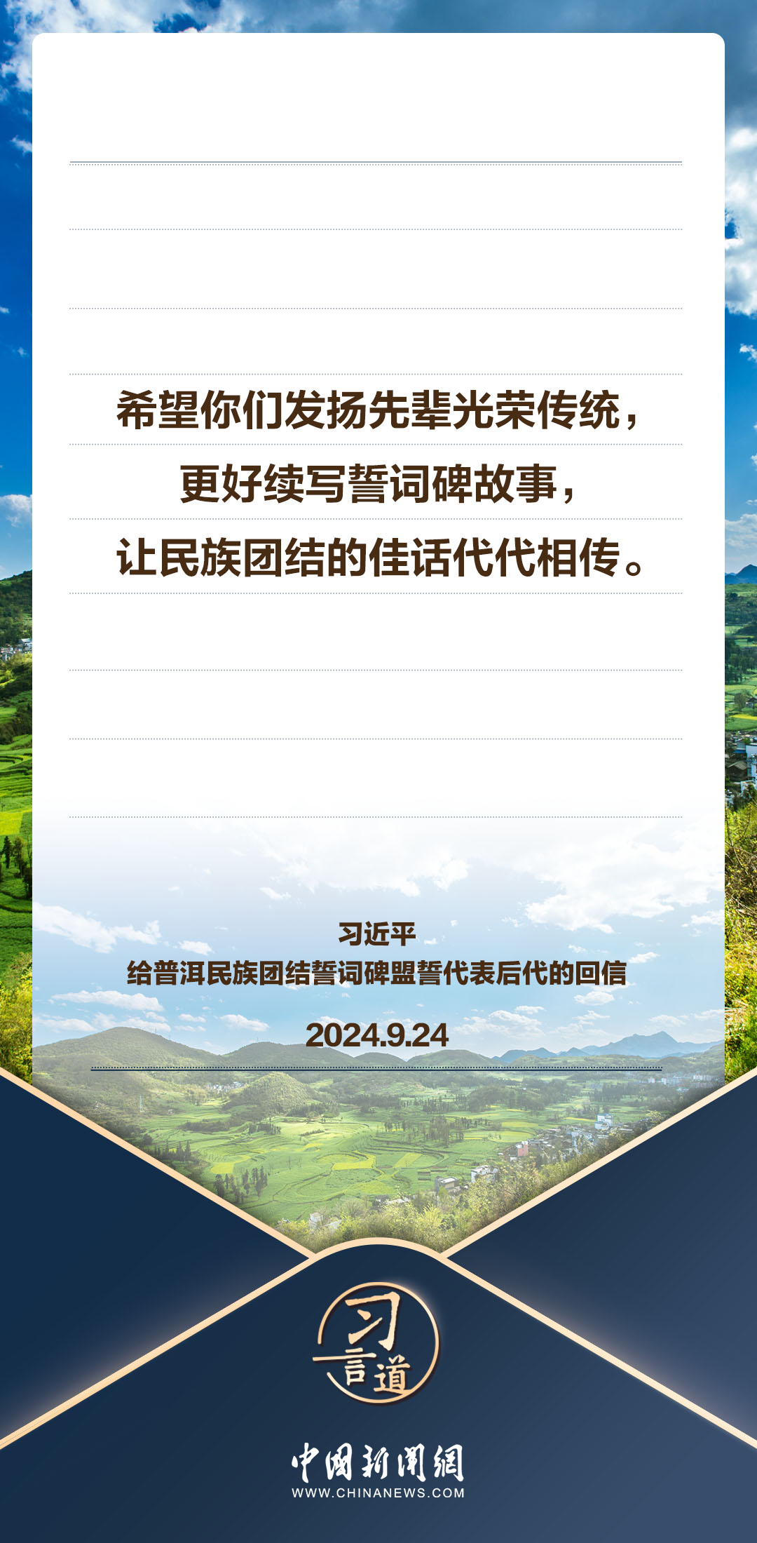 近日,中共中央总书记、国家主席、中央军委主席习近平给普洱民族团结誓词碑盟誓代表后代回信。习近平指出——