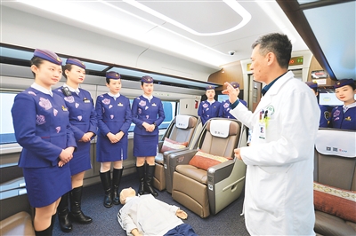 1月8日,山东青岛医院专家为高铁乘务人员传授急救技能。王海滨摄(人民视觉)