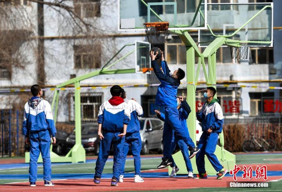 资料图:初中生在课间休息时打篮球。中新社记者 刘新 摄