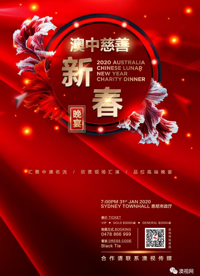 由澳视传媒和澳中文化友好协会主办的澳中慈善新春晚宴,将于2020年1月31日晚7点在悉尼市政厅举办。