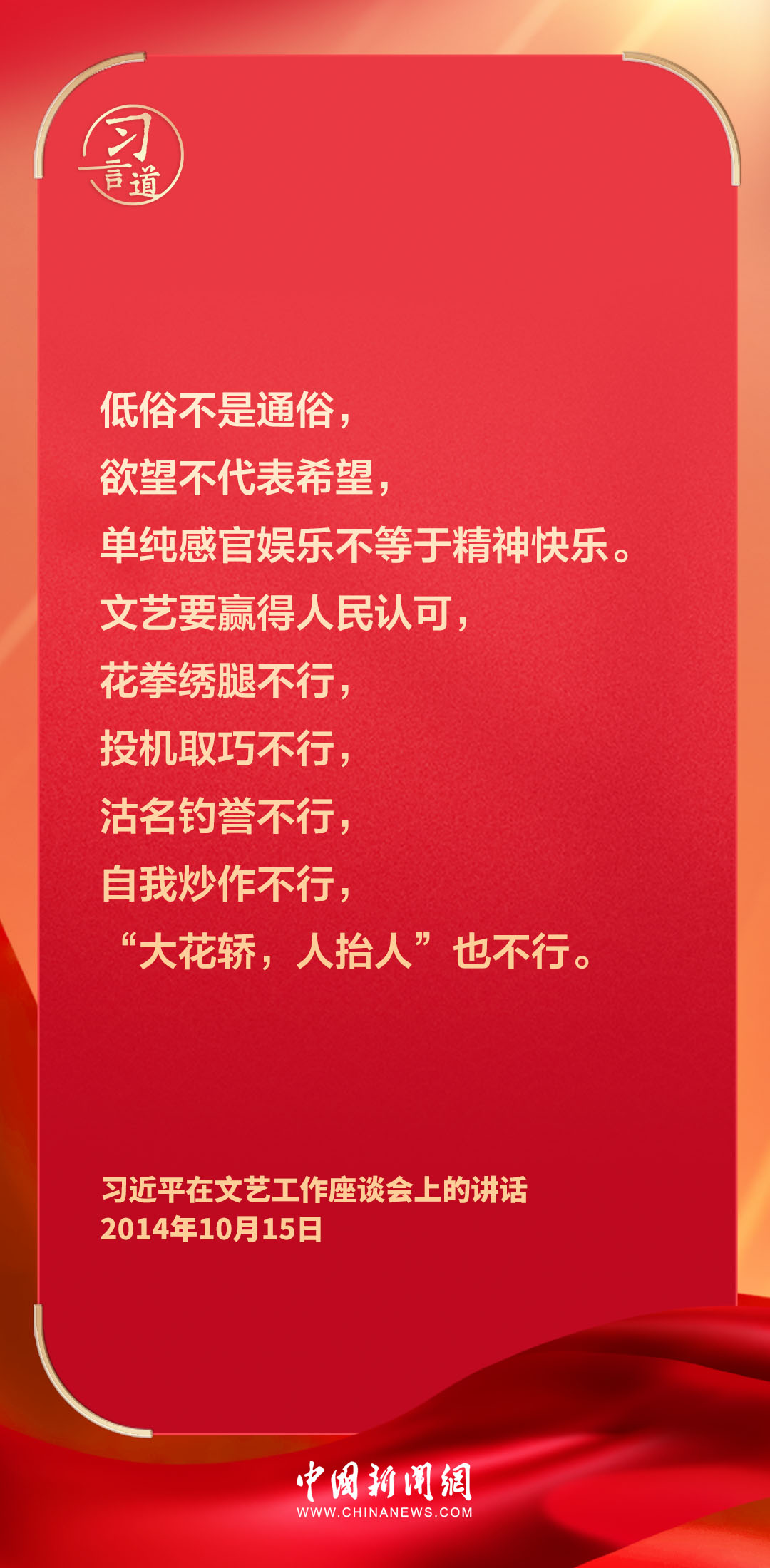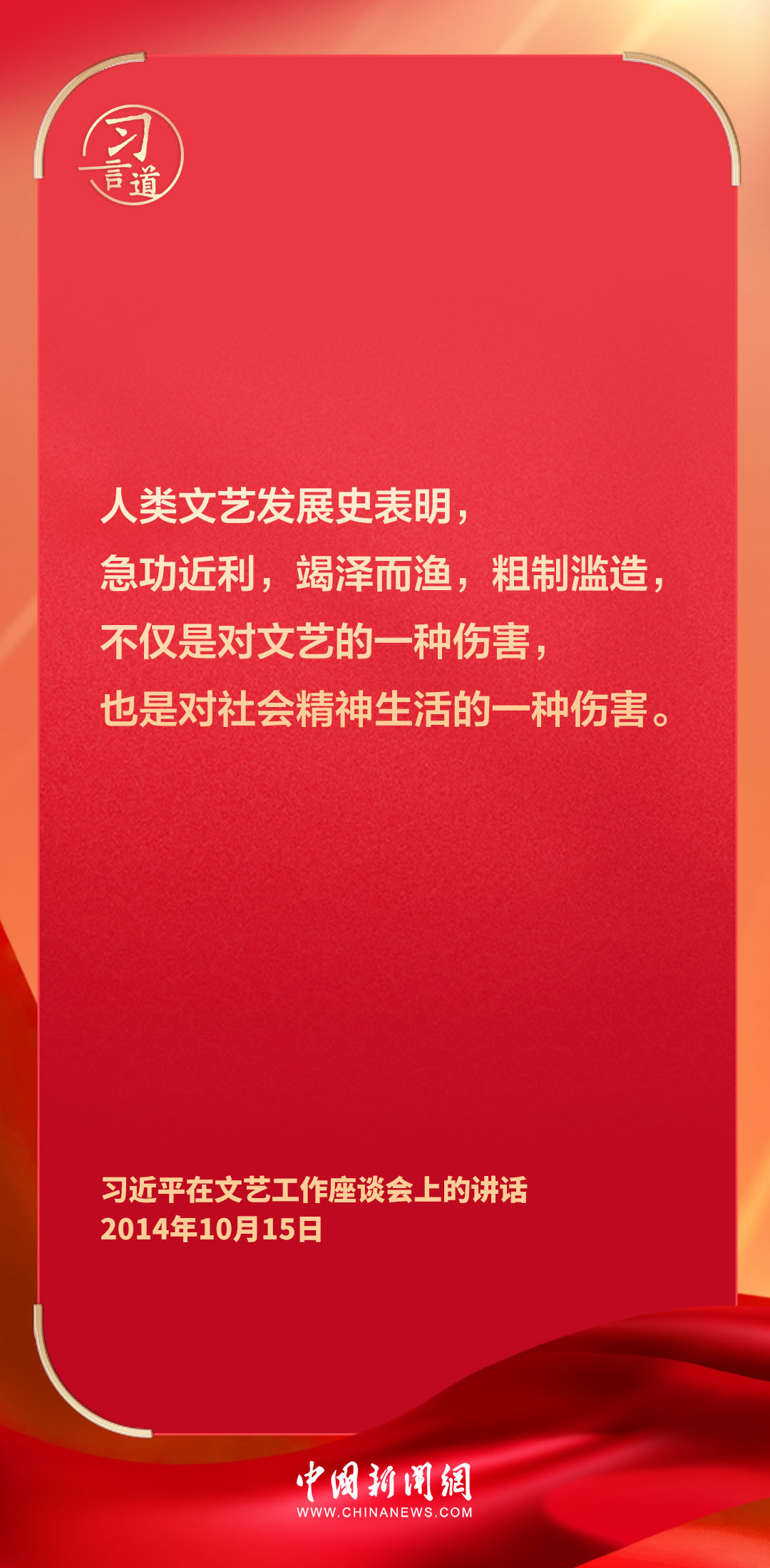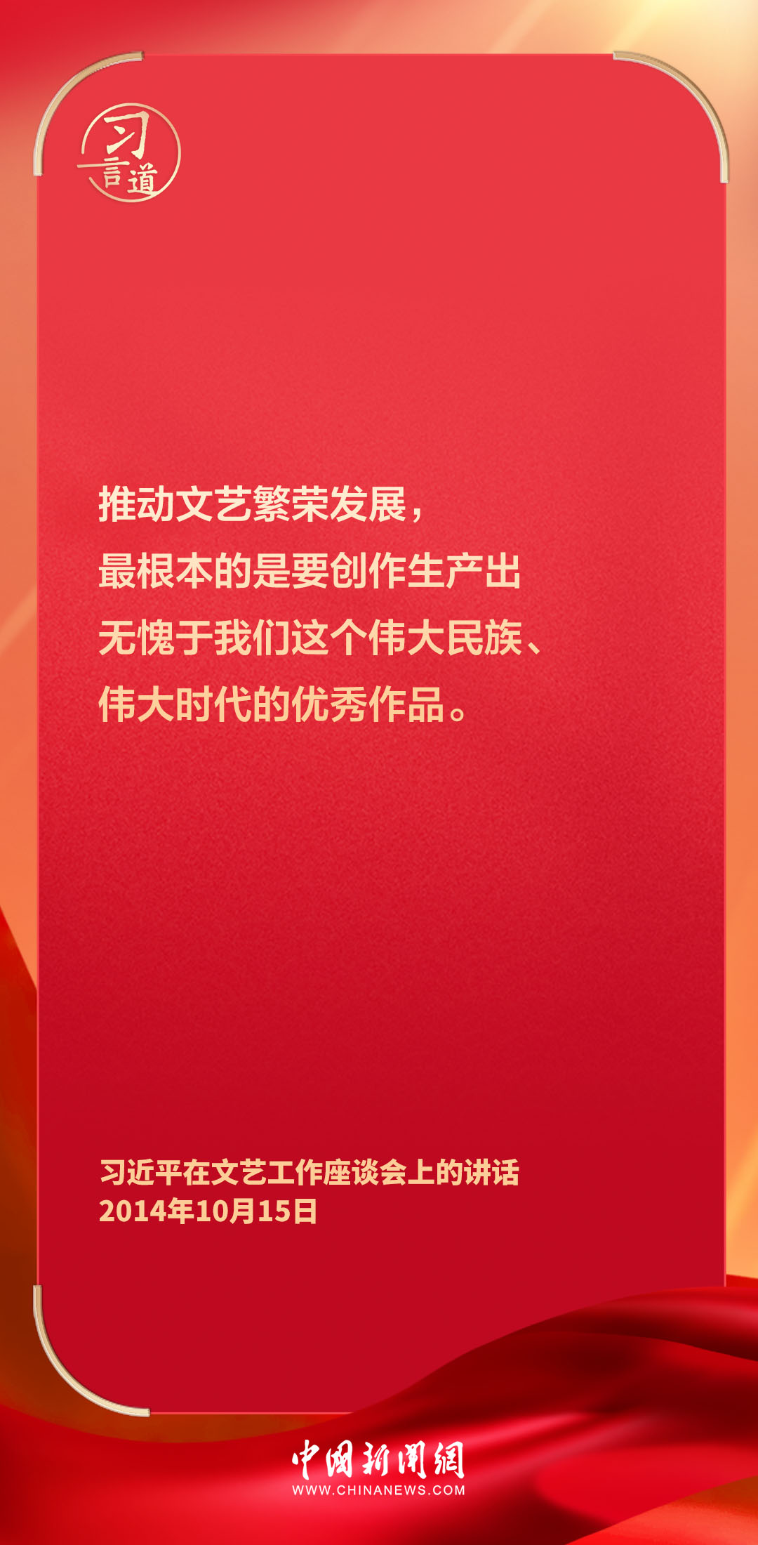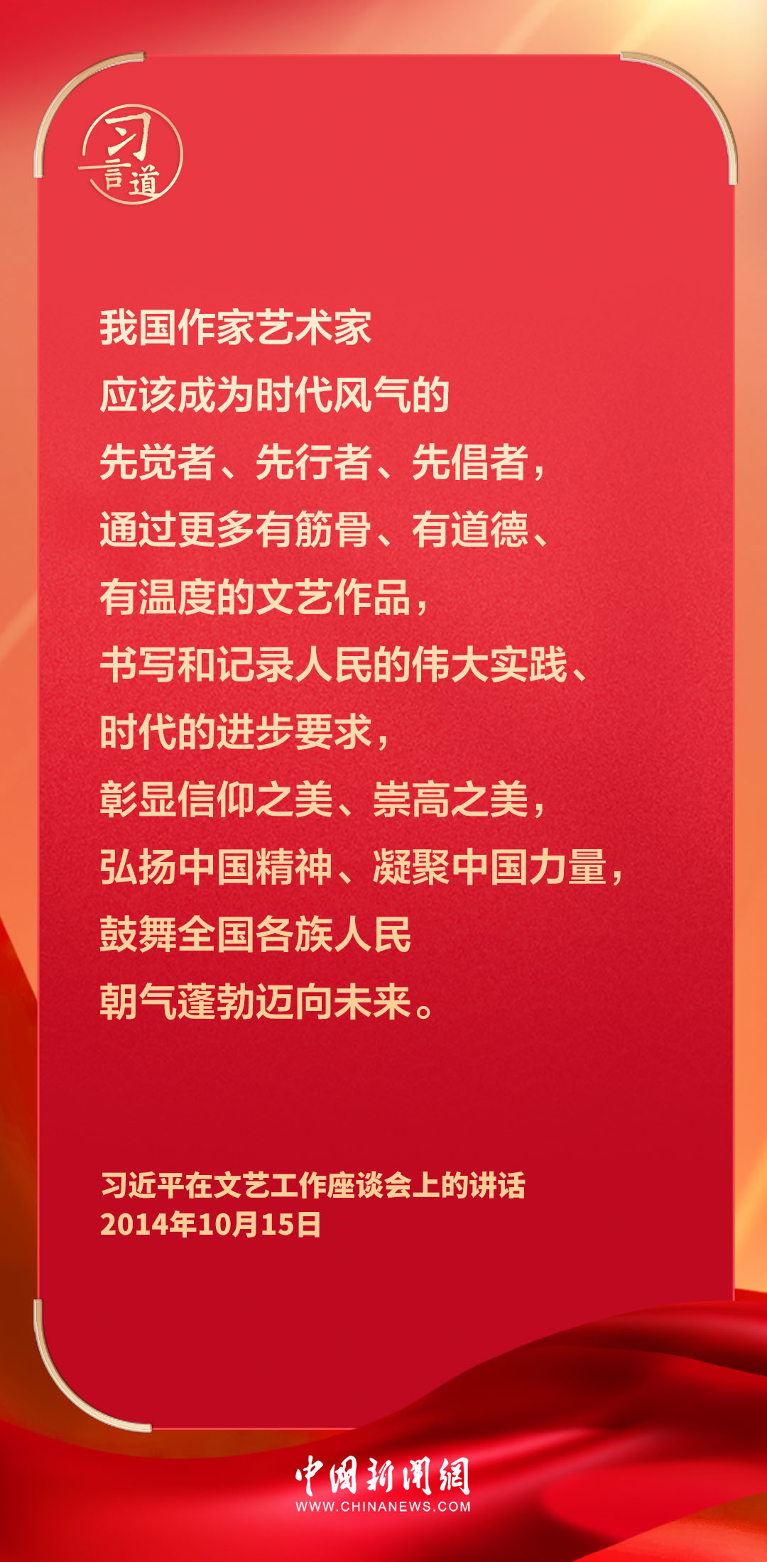 在文艺工作座谈会召开10周年之际,10月16日出版的《求是》杂志重新发表中共中央总书记、国家主席、中央军委主席习近平2014年10月15日《在文艺工作座谈会上的讲话》。习近平在讲话中指出——